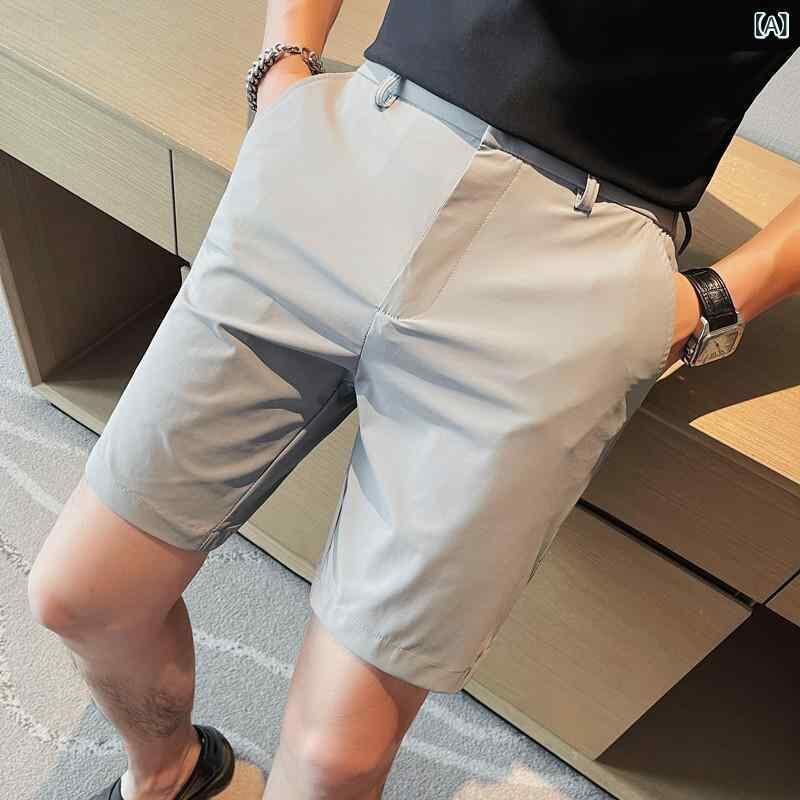 ショートパンツ メンズ カジュアル 夏 薄手 清涼感 接触冷感 スリムフィット 快適 高ストレッチ ナイロン素材 普段使い ストレートフィット グレー ブラック
