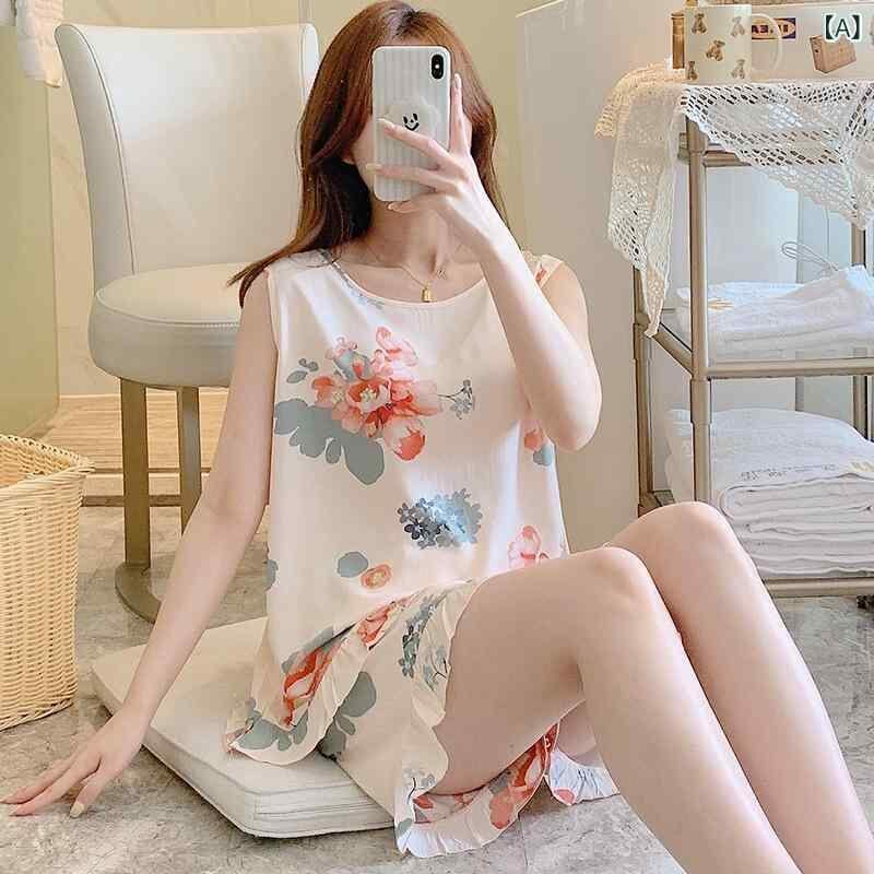 パジャマ レディース 夏 薄手 ノースリーブ タンクトップ ショートパンツ 2点セット 大きいサイズ ゆったり 綿混 レーヨン混 再生繊維 接触冷感 吸湿速乾 通気性 涼しい 快適 リラックス ルームウェア 部屋着 ワンマイルウェア おうち時間 普段使い