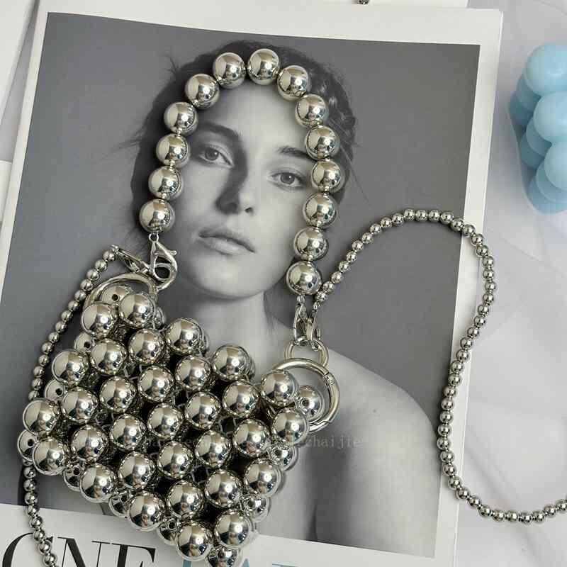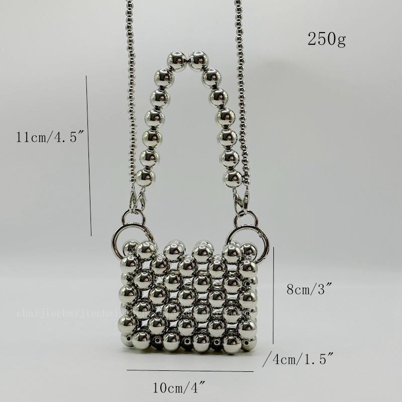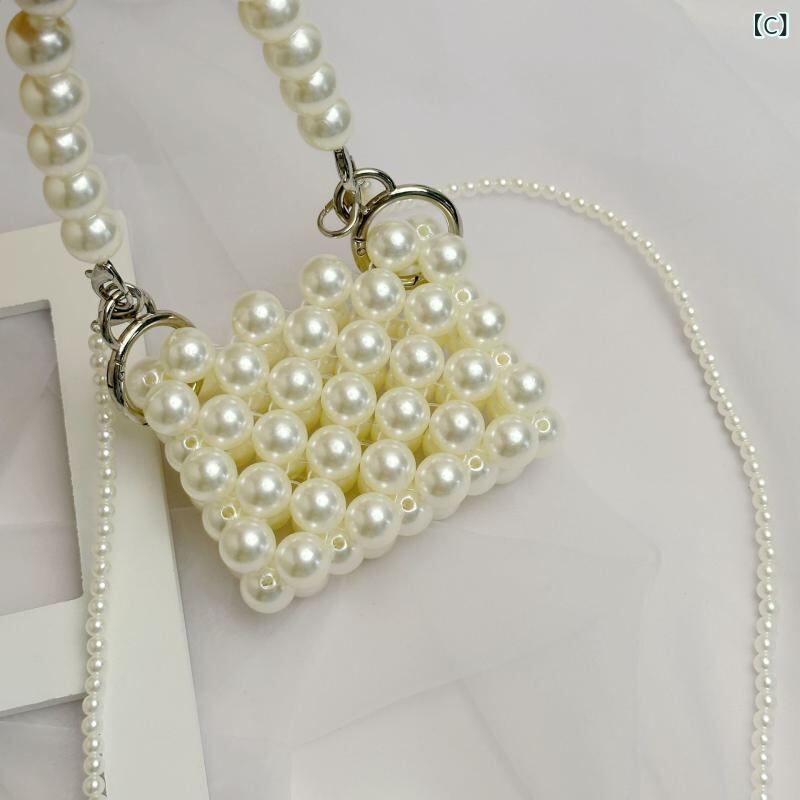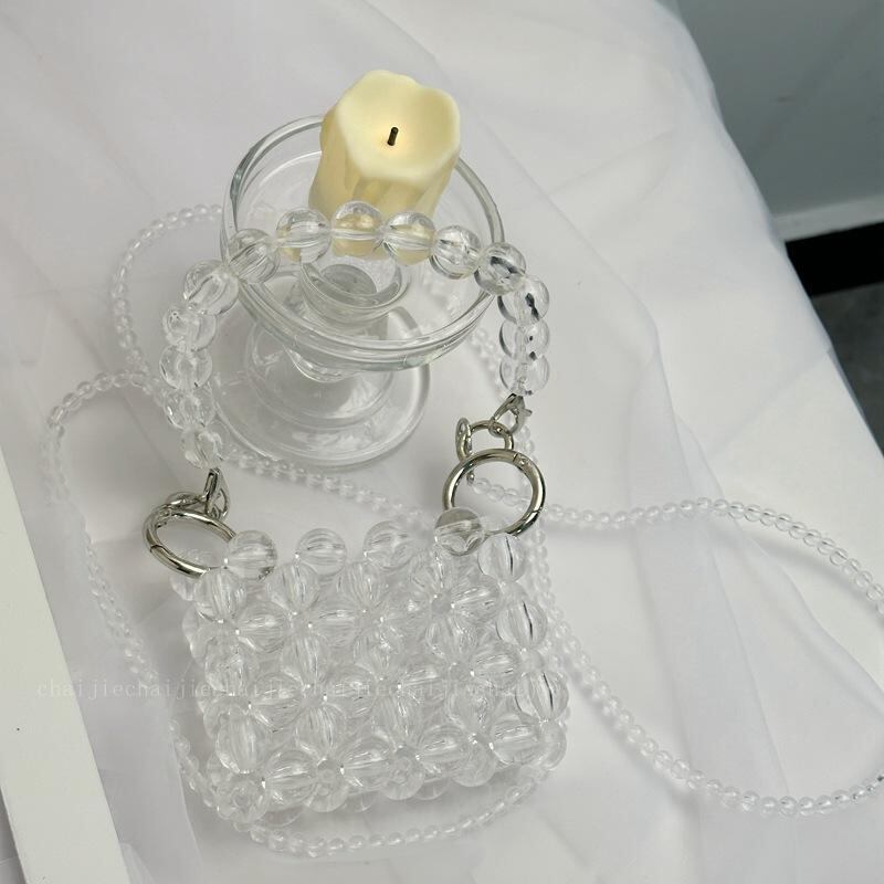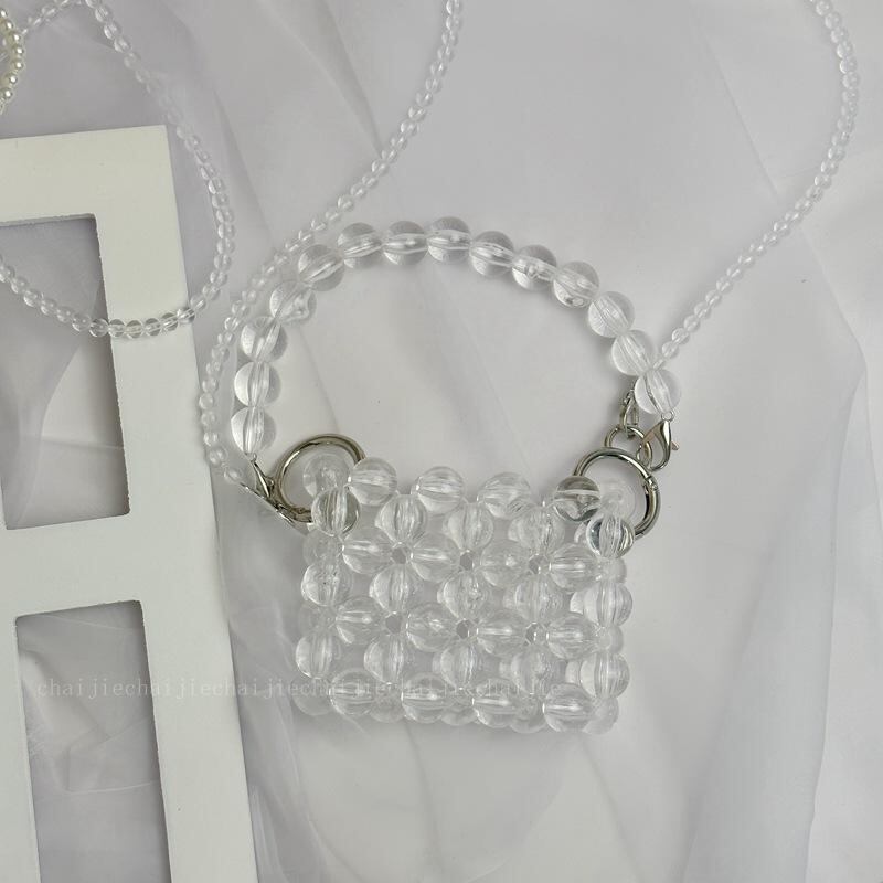 ショルダーバッグ レディース レトロ ミニ スクエア型 アクリル ビーズ チェーン 編み込み ハンドメイド 2way 手持ち 斜めがけ コンパクト デイリー カード入れ