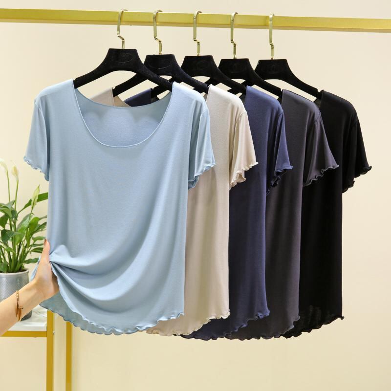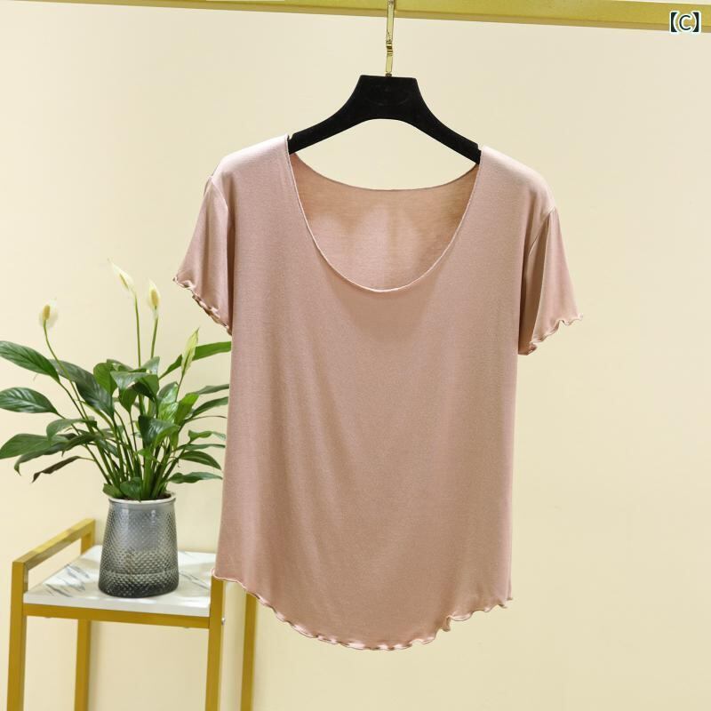 Tシャツ レディース モーダル ポリウレタン混 半袖 ゆったり オーバーサイズ 大きいサイズ 薄手 着痩せ効果 ラウンドネック 丸首 無地 インナー トップス 普段使い 着回し カジュアル