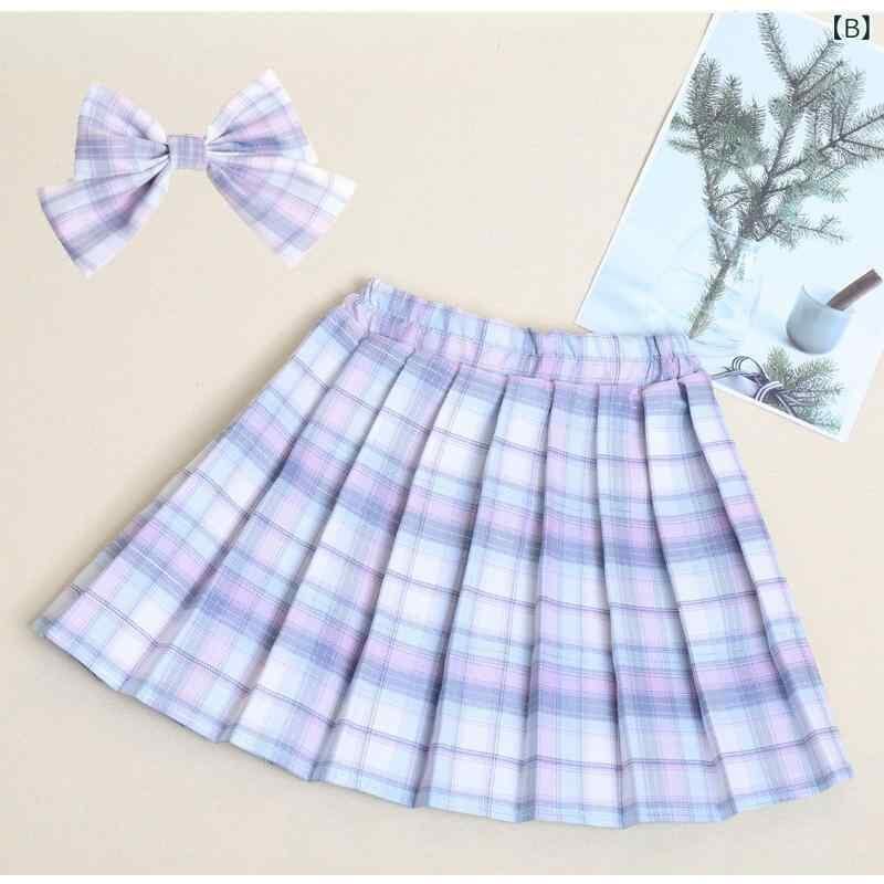 スカート 女の子 子供 キッズ ベビー JK制服風 格子柄 チェック柄 プリーツスカート ショート丈 ミニ丈 ハイウエスト 細見え 韓国風 カジュアルスタイル ポリエステル 綿混 ピンク系 ブルー系 パープル系 ベージュ系