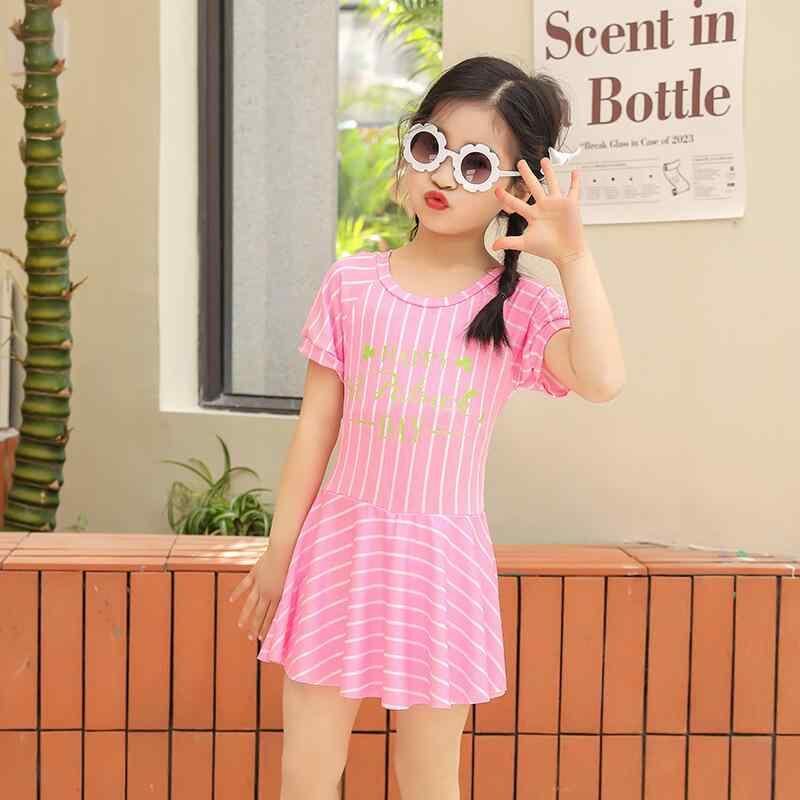水着 キッズ 女の子 プリンセス風 ワンピース 半袖 スカート付き スイムウェア かわいい おしゃれ 温泉 プール 水泳 水遊び ポリエステル繊維 スパンデックス 再生繊維素材 ピンク レッド 学生向け