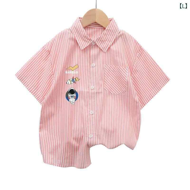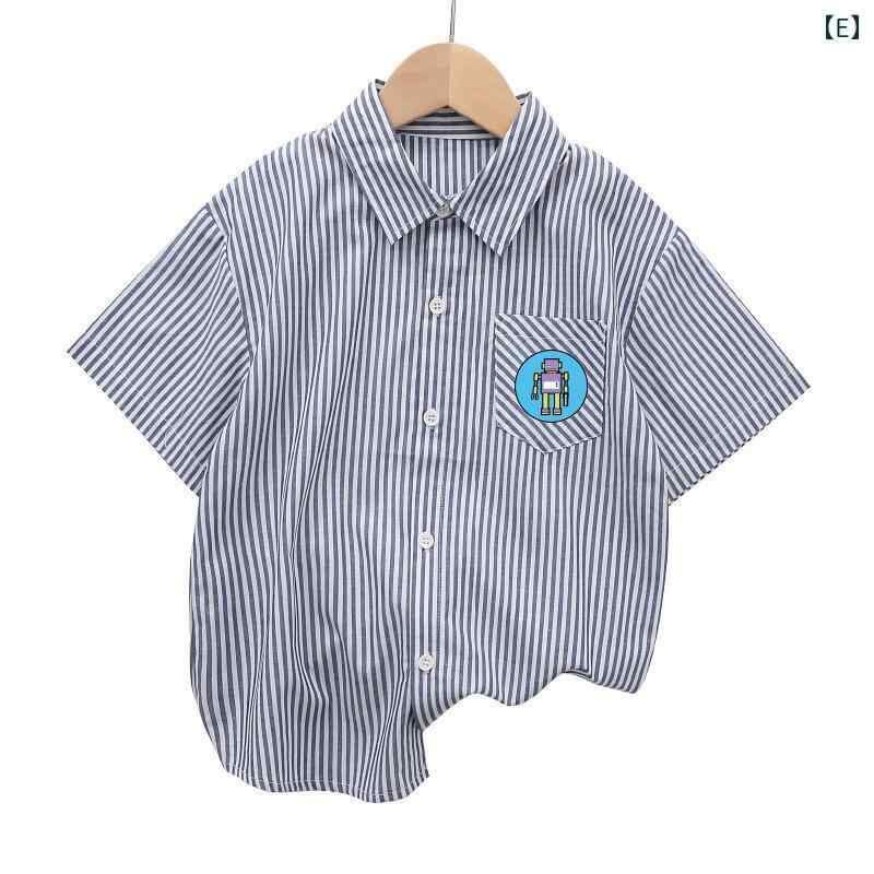 シャツ キッズ 男女兼用 半袖 ストライプ柄 襟付き コットン100% 夏物 おしゃれ カジュアル 韓国風 無地 キャラクター柄 英字プリント 柔らかな肌触り トップス