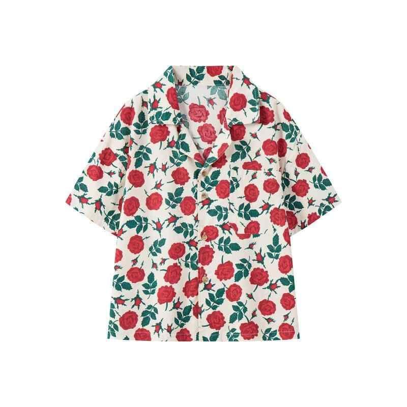 キッズ 男の子 半袖シャツ 花柄 総柄 フラワープリント 薄手 軽量 通気性 カジュアル ストリートファッション おしゃれ かわいい 夏服 ポリエステル 襟付き
