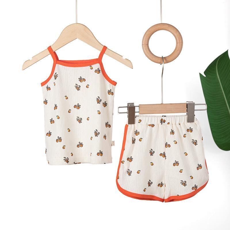 ベビー 女の子 キャミソール セットアップ 小花柄 綿100% 薄手 ショートパンツ 夏物 快適 通気性 吸湿速乾 柔らかい肌触り お出かけ 普段使い ルームウェア