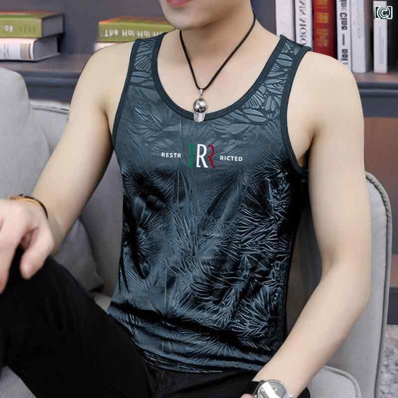 タンクトップ メンズ ノースリーブ Tシャツ 接触冷感 インナー 夏用 スポーツ トレーニング フィットネス ジム 吸湿速乾 薄手 フィット ポリエステル ロゴプリント
