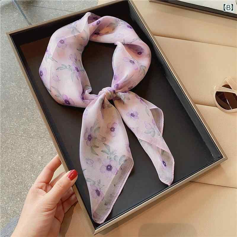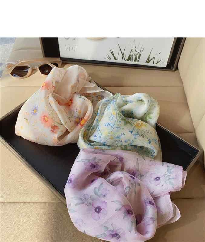 スカーフ レディース 花柄 絹シフォン 薄手 涼感 正方形 ネックチーフ ヘアアクセサリー 春夏用 普段使い オフィス カジュアル 冷房対策 旅行 日よけ 65cm