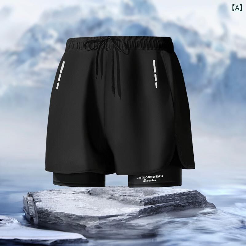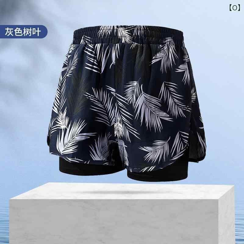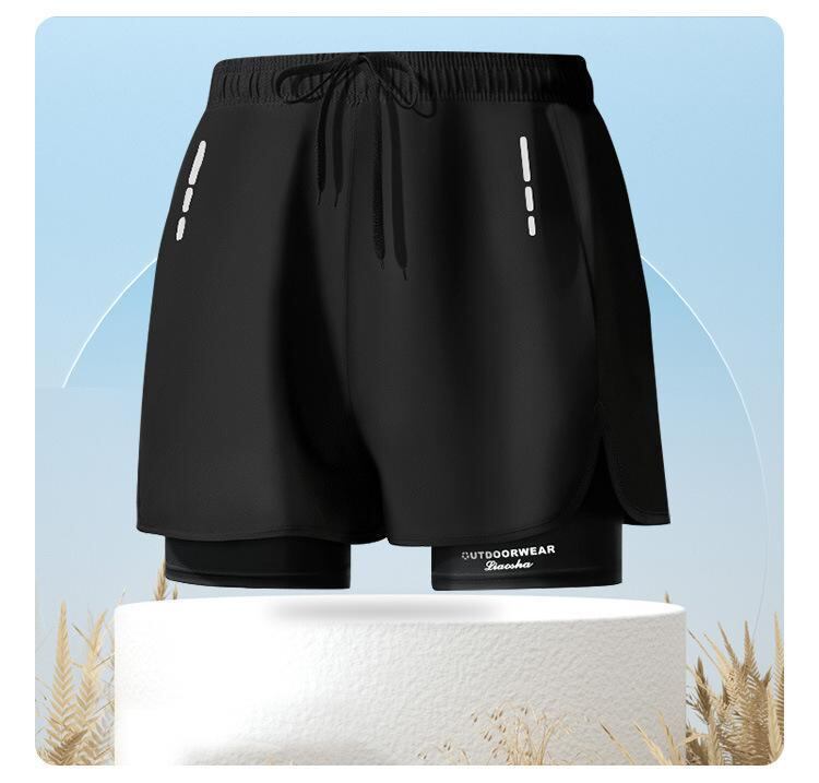 競泳パンツ メンズ ボクサータイプ ダブルレイヤー 透け防止 インナー付き ゆったり 大きめサイズ 体型カバー スイムウェア 温泉 プール 海水浴 リゾート ポリエステル 再生繊維 無地 柄物 速乾 伸縮性