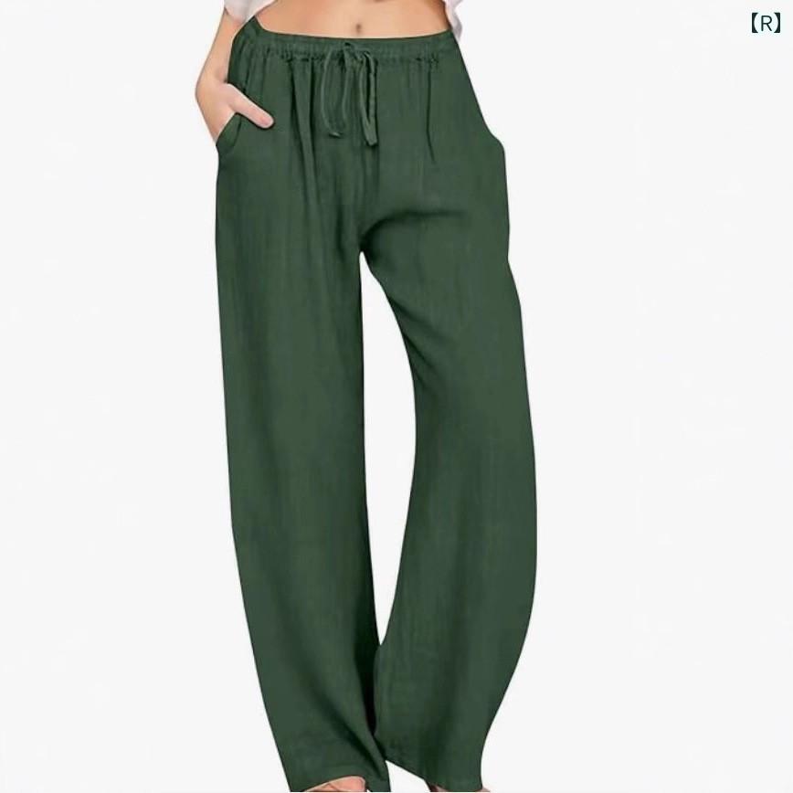 ワイドパンツ レディース ガウチョパンツ ウエストゴム ロング丈 リネン 麻 コットンブレンド カジュアル ゆったり プラスサイズ 体型カバー リラックススタイル