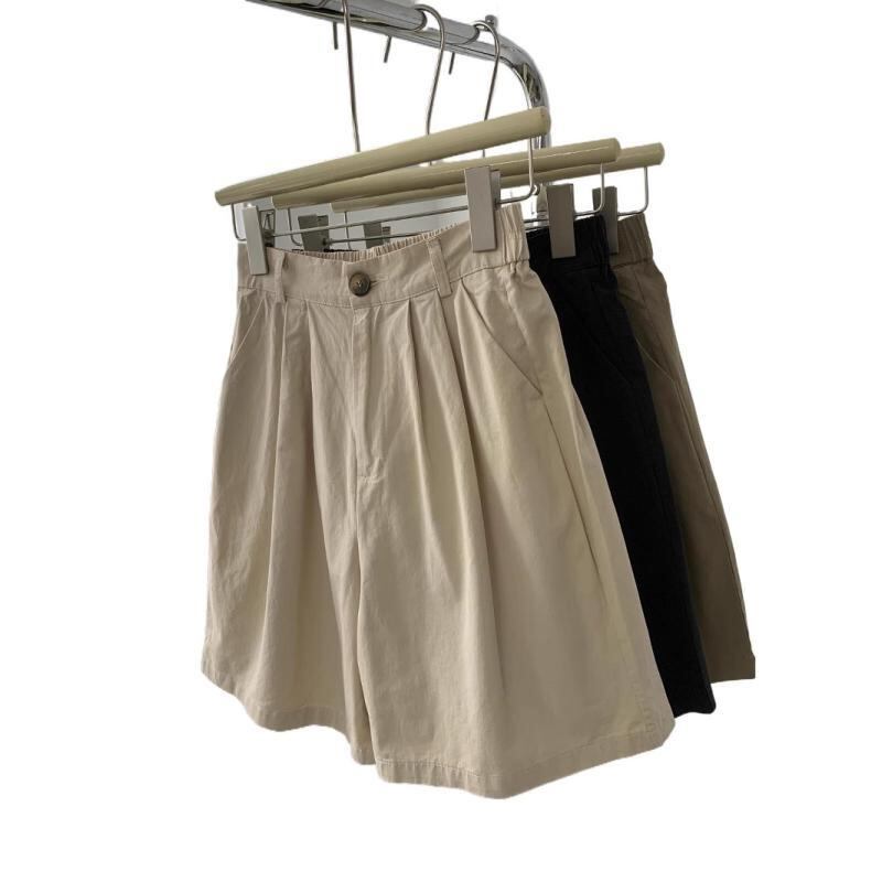 ショートパンツ レディース ワイドシルエット ハイウエスト ウエストゴム 綿100% コットン Aライン ハーフ丈 夏物 カジュアル レトロ 着痩せ効果 薄手 ポケット付き