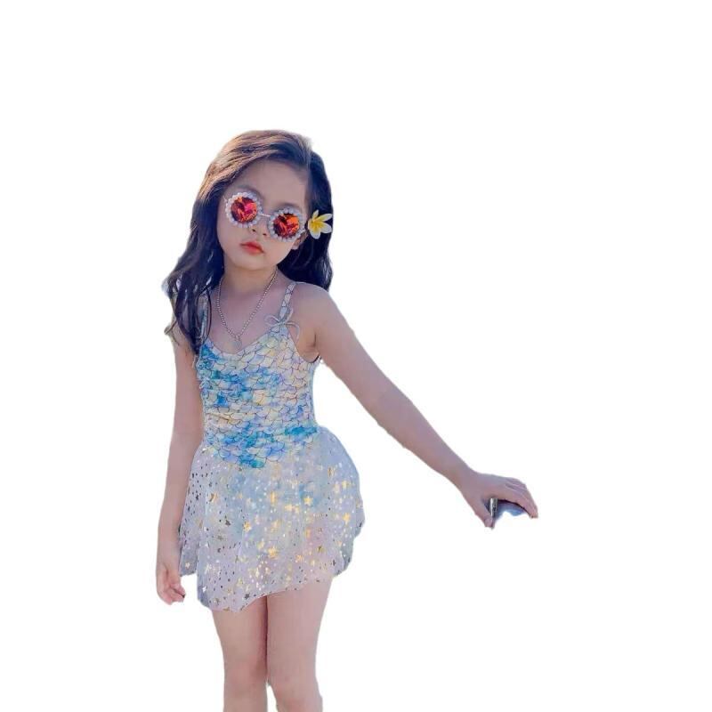 水着 女の子 キッズ ベビー ワンピース スイムウェア スカート一体型 チュール メッシュ かわいい 花柄 韓国風 サイズ調整可能 プール 海水浴 夏 レジャー 伸縮性 ナイロン ポリエステル イエロー