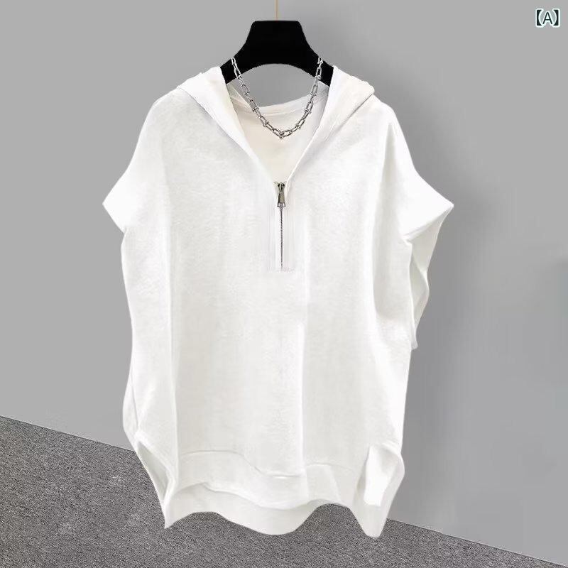 パーカー メンズ 無地 ジップアップ ノースリーブ ベスト 韓国風 トレンド 夏用 カジュアル ゆったり ルーズフィット ポリエステル 化繊混紡 クール 着回し 万能 トップス