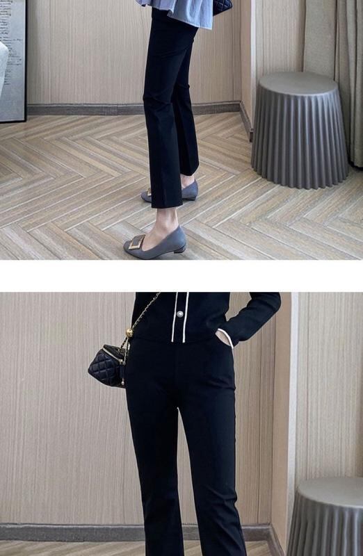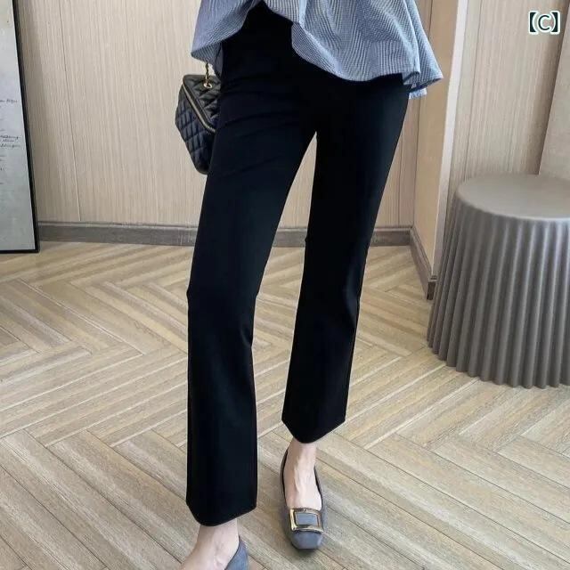 パンツ レディース フレアパンツ アンクル丈 スリット入り 体型カバー 着痩せ効果 小柄 大きいサイズ ウエストゴム ポリエステル ストレッチ 薄手 ブラック きれいめ オフィス 通勤