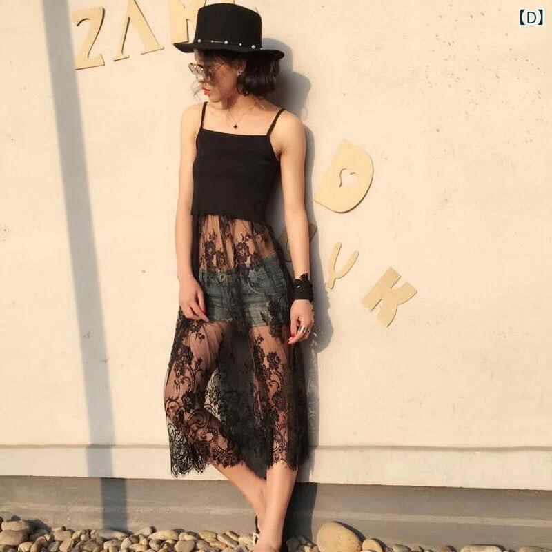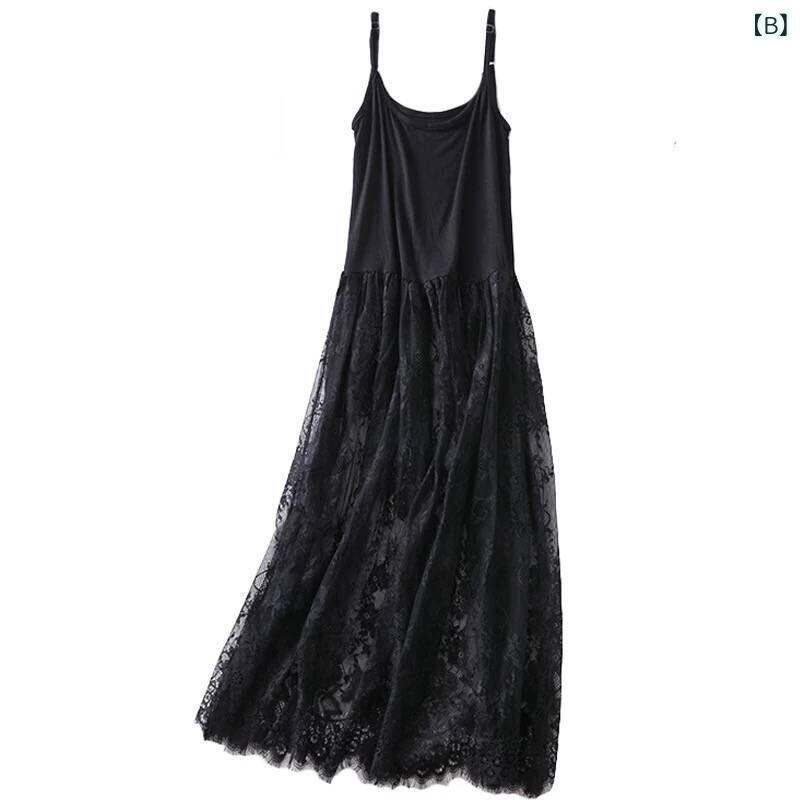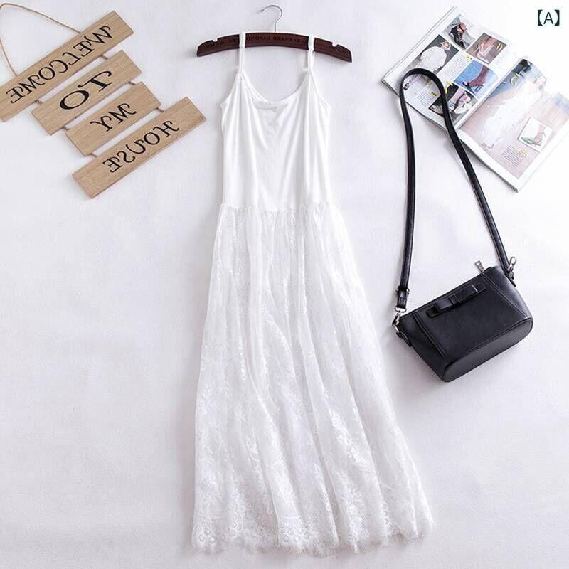 ワンピース レディース キャミソール ノースリーブ レース ミディ丈 大きいサイズ 夏 一枚着 重ね着 ポリエステル ラウンドネック ホワイト ブラック 無地 フェミニン