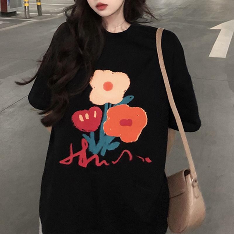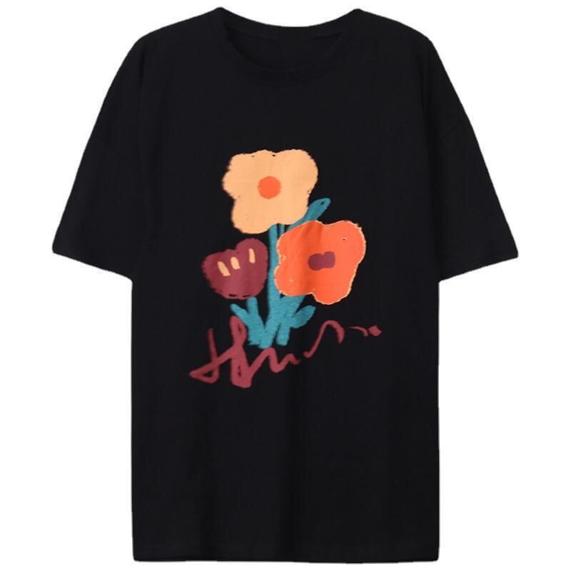 ・カテゴリ: Tシャツ・主な素材: ポリエステル70〜80%・柄: 花柄、プリント・スタイル: カジュアル、プルオーバー・袖丈: 半袖・フィット: ルーズフィット・着丈: ミドル丈(約65〜80cm)・ネックライン: クルーネック・カラー展開: ホワイト、ブラック・サイズ展開: L、XL、2XL、3XL、4XL