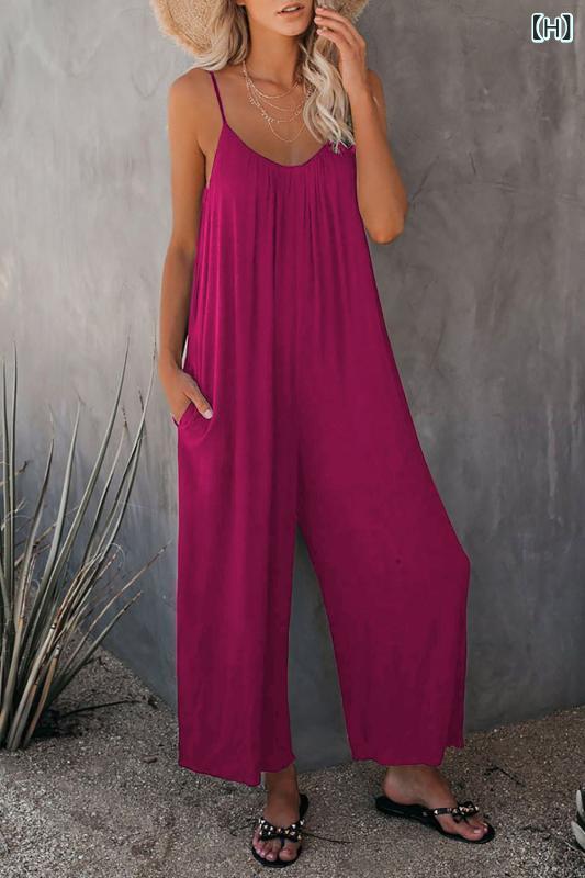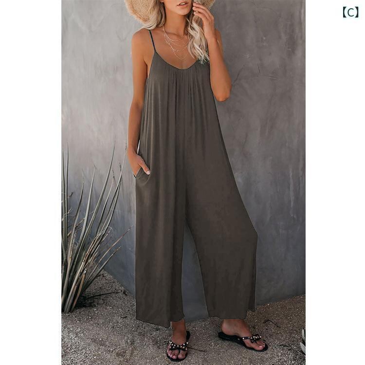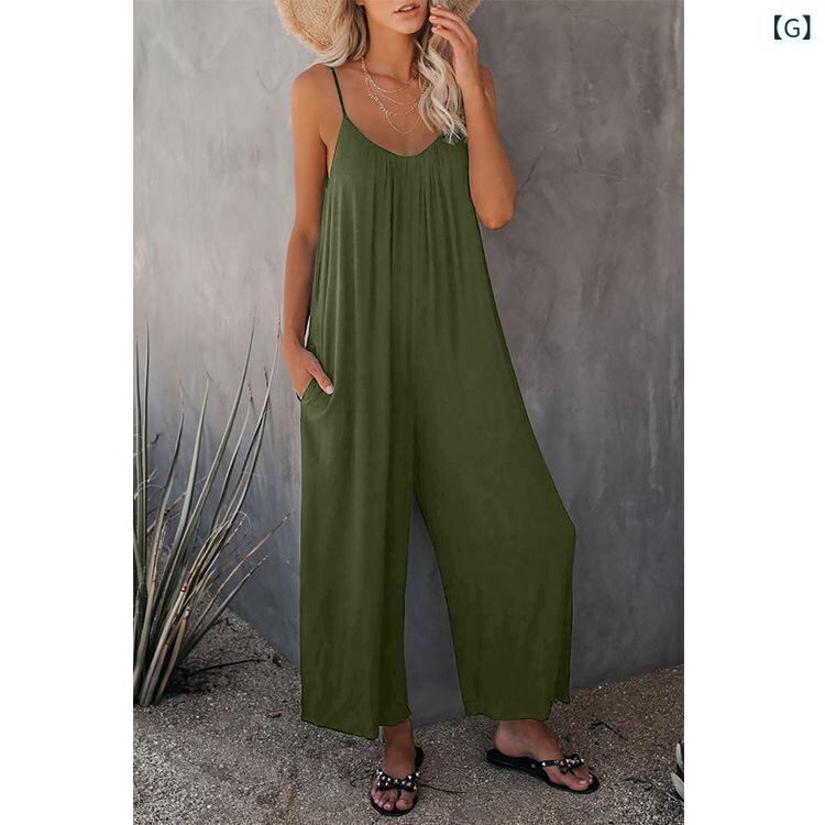 サロペット レディース 女性用 無地 サイドポケット付き ゆったり ワイドシルエット ロング丈 薄手 綿混 ポリエステル混紡 ストレッチ素材 カジュアル 普段使い リラックスウェア オールインワン