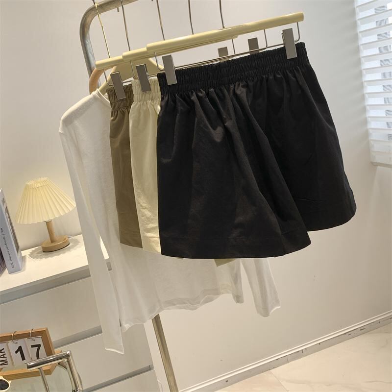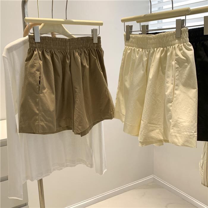 ショートパンツ レディース ウエストゴム ハイウエスト 無地 ワイドレッグ 夏 涼しい 薄手 ゆったり ポケット コットン 綿混素材 リラックス カジュアル スポーツ アウトドア ルームウェア ブラック ベージュ カーキ