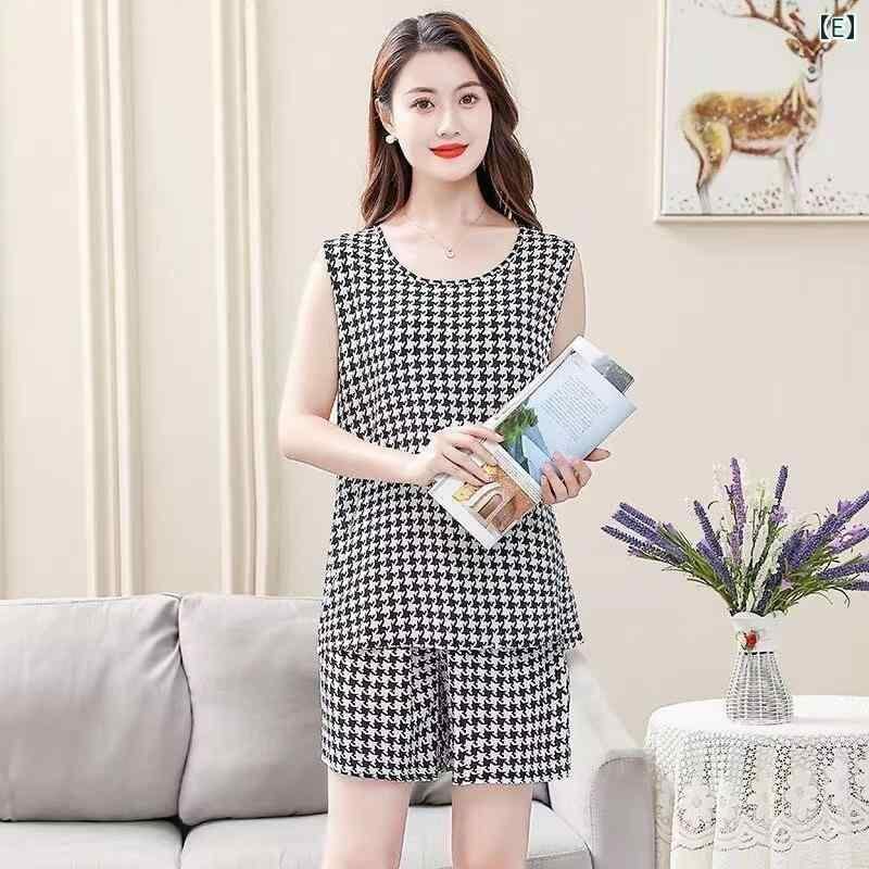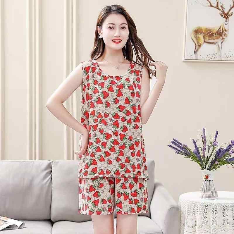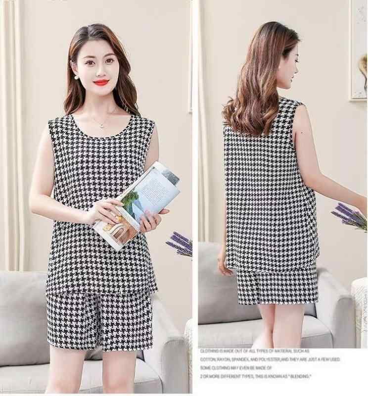 ・カテゴリ: セットアップ ・スタイル: セクシー ・主な素材: 綿95-100% ・ネックライン: クルーネック ・袖丈: ノースリーブ ・パンツ丈: 5分丈 ・生地厚さ: 約201-250g/m² ・機能: 通気性、ルームウェア兼外出着 ・対象: 若年女性 ・サイズ展開: XL、2XL、3XL、4XL