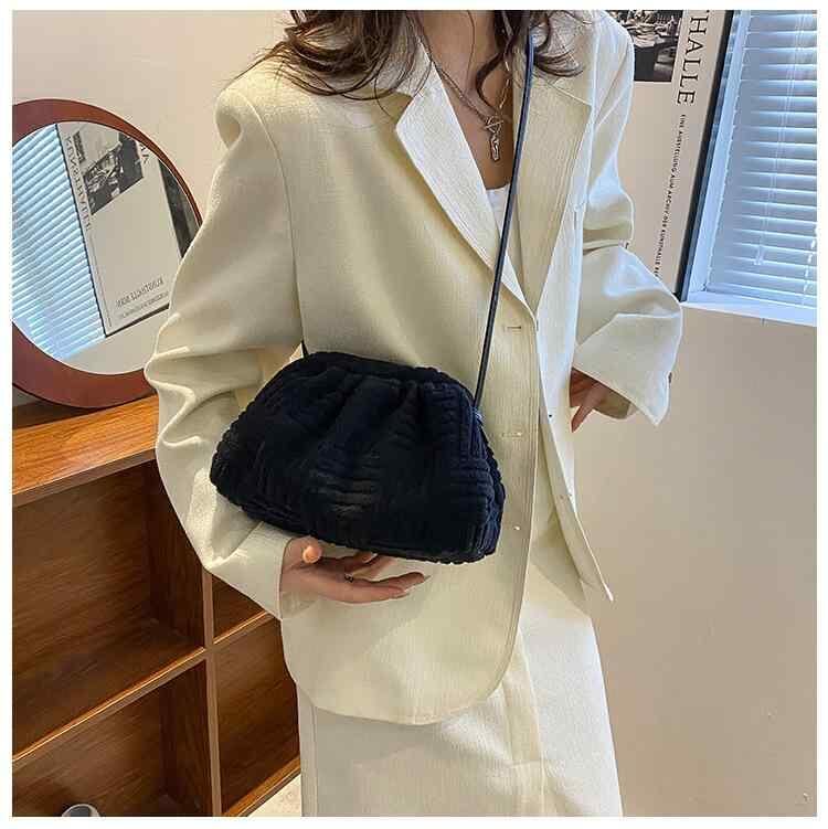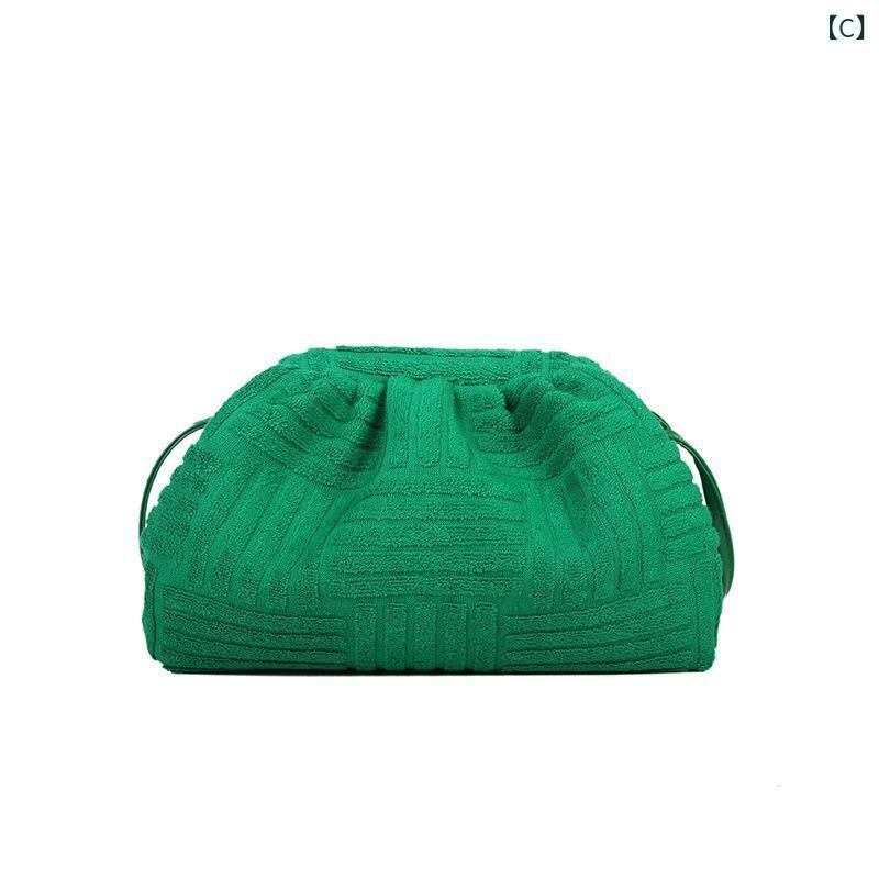 バッグ レディース ショルダーバッグ 斜め掛け ホーボーバッグ クラウドバッグ ふわふわ ソフト タオル地 ベロア プリーツ 横型 スクエア シンプル カジュアル デイリーユース 普段使い トレンド ブラック ホワイト グリーン オレンジ ローズピンク