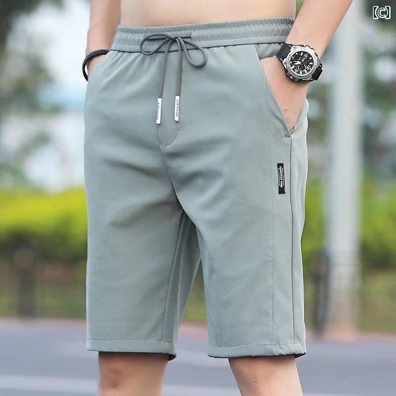 ショートパンツ メンズ 男性用 接触冷感 ストレッチ 薄手 軽量 吸湿速乾 ルーズフィット ワイドシルエット 五分丈 クロップドパンツ ビーチ リゾート 夏 カジュアル アウトドア 部屋着 普段使い ブラック ライトグレー グリーン カーキ