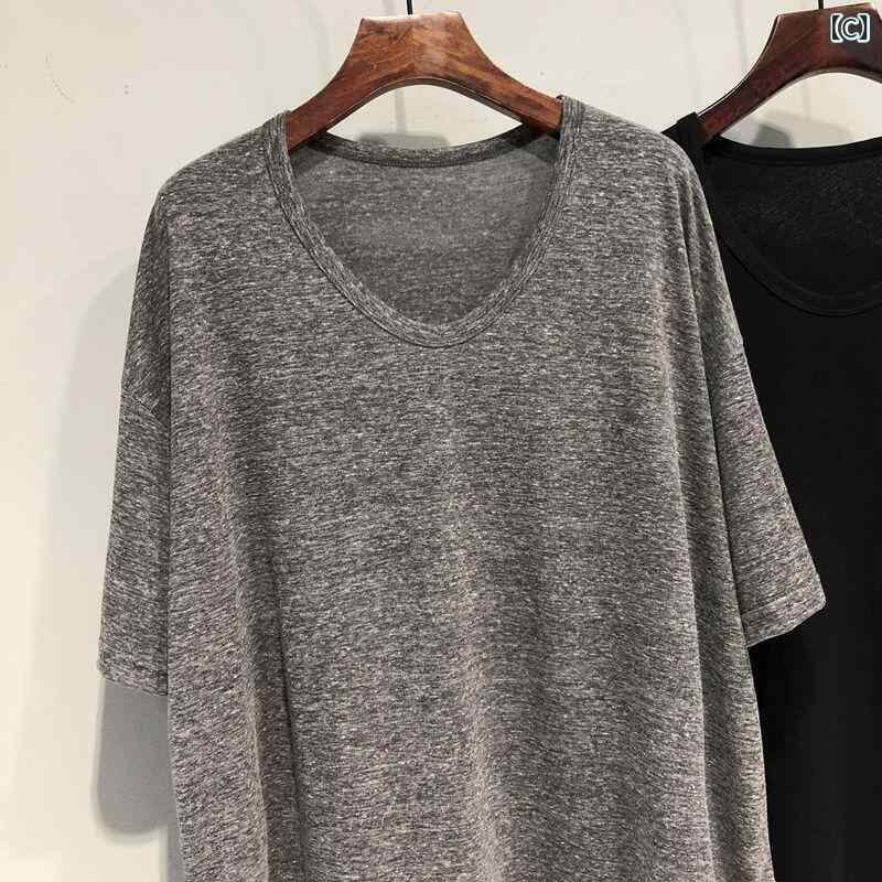 Tシャツ レディース 大きいサイズ ぽっちゃり体型向け 夏 韓国風 ゆったり リラックスフィット Vネック 半袖 チュニック丈 無地 トップス ポリエステル素材 通勤 オフィス カジュアル 普段使い ブラック ホワイト グレー