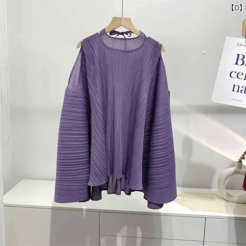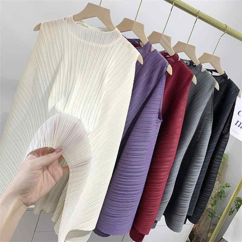 Tシャツ レディース ノースリーブ ホルターネック ギャザー ゆったり 大きいサイズ 無地 プルオーバー クルーネック ポリエステル カジュアルスタイル グレー オフホワイト ブラック パープル ワインレッド
