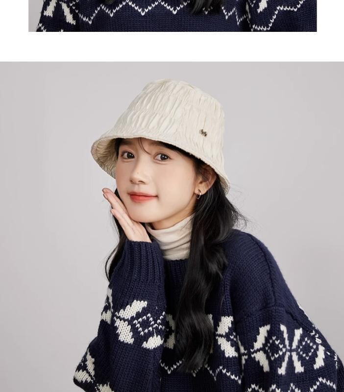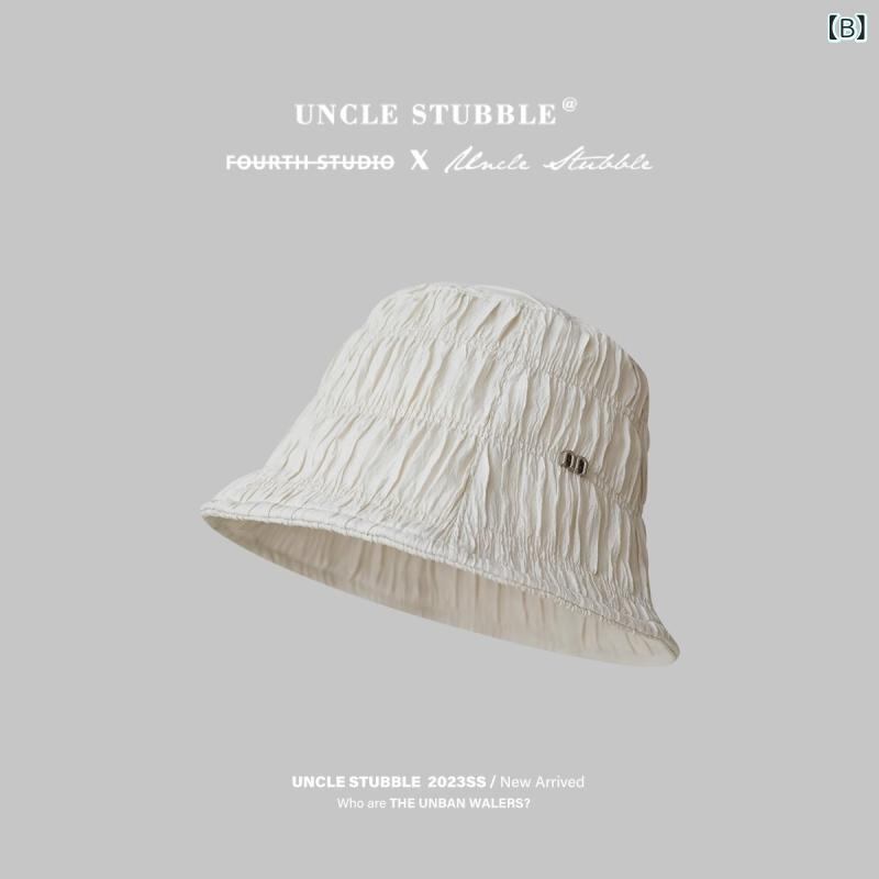 バケットハット レディース 韓国ファッション おしゃれ ストリート系 上品 きれいめ プリーツ加工 テクスチャー 立体感 小顔効果 つば広 日よけ 紫外線対策 UVカット 通気性 オールシーズン対応 サイズ調整可能 ブラック オフホワイト