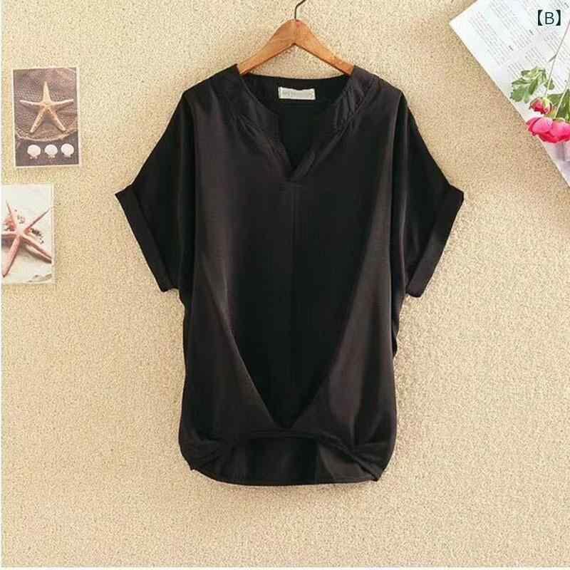 トップス レディース 大きいサイズ ゆったり ルーズ Vネック 半袖 ドルマンスリーブ シフォン 体型カバー きれいめ エレガント オフィス 通勤 カジュアル
