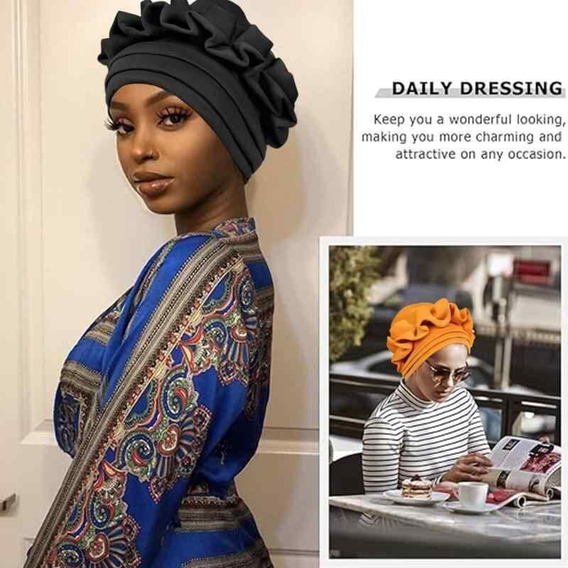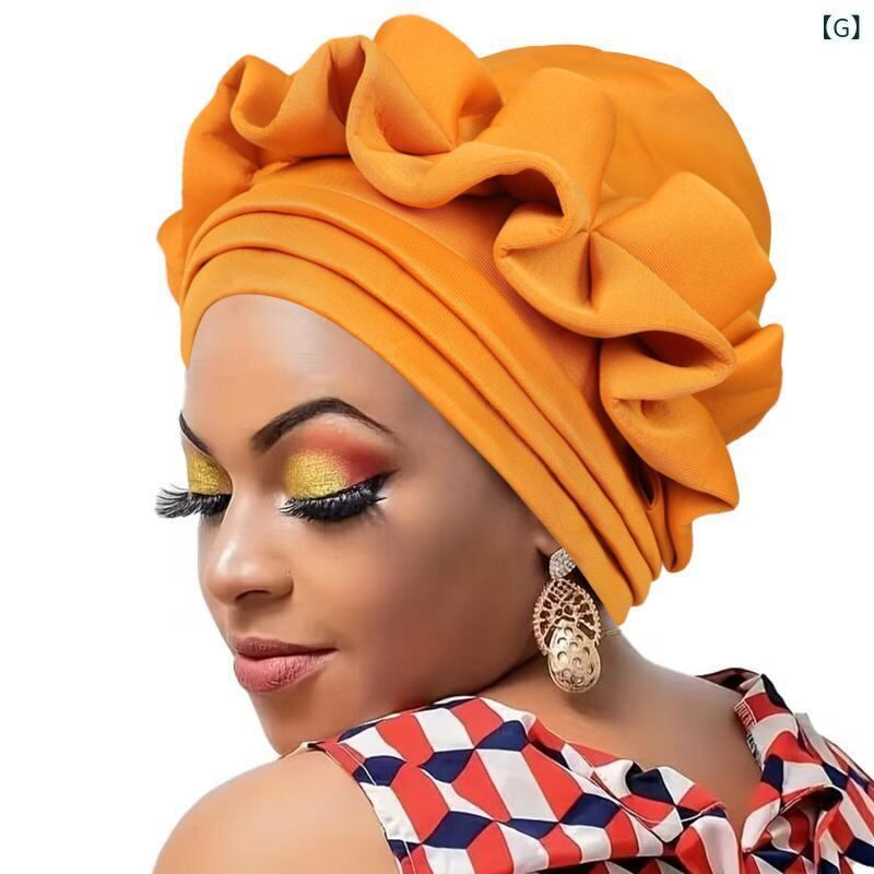 頭巾帽 エスニック アフリカンスタイル ファッション プリーツ 水波模様 ナイトキャップ 睡眠用 ヘアケア 大人用 つばなし ハイクラウン ポリエステル オールシーズン 通気性 保温 防風 紫外線対策 日よけ 普段使い