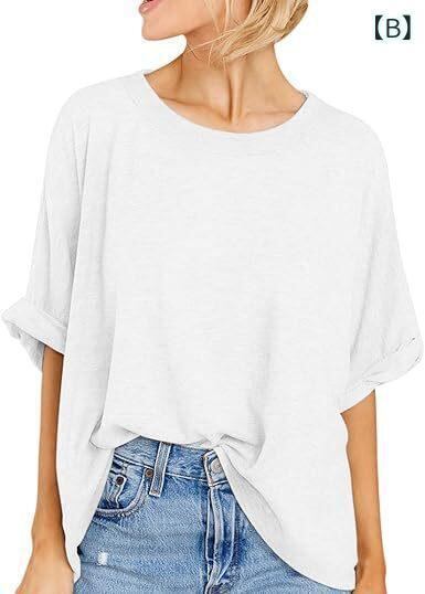 Tシャツ レディース 大きいサイズ 半袖 クルーネック ゆったり オーバーサイズ ビッグシルエット カジュアル リラックス 普段使い ルームウェア 無地 ポリエステル 快適 マカロンカラー 多色展開 黒 白 ミントグリーン
