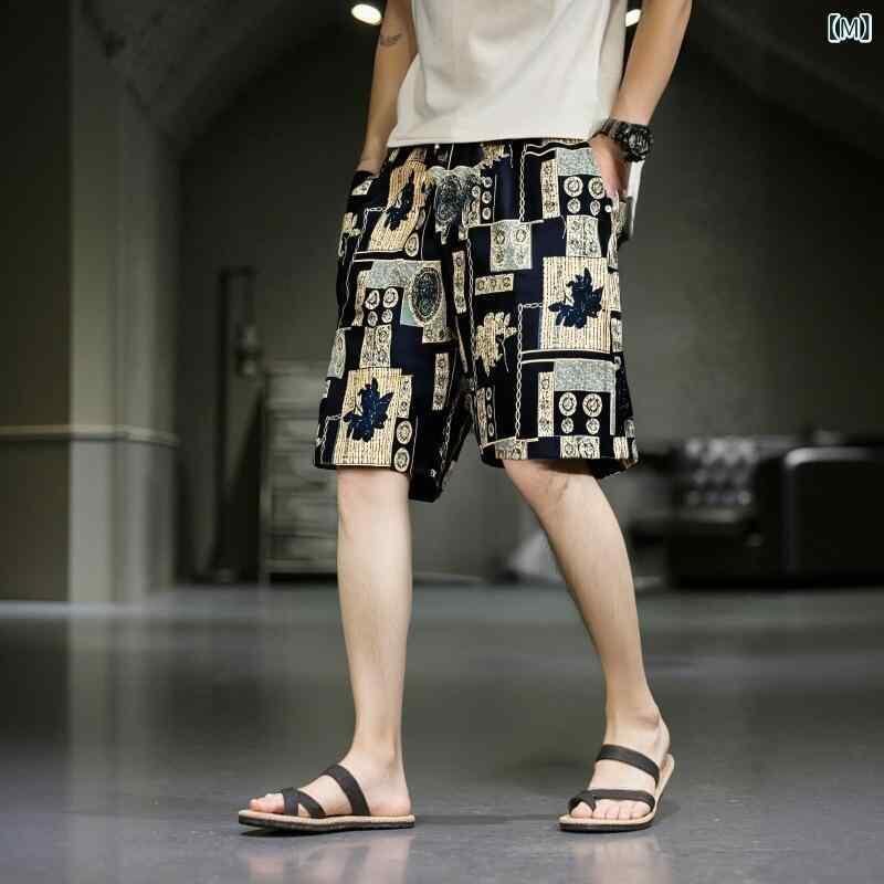ショートパンツ メンズ 薄手 速乾 吸水速乾 綿麻 ハーフパンツ カジュアル 普段使い ルームウェア エスニック柄 ゾウ柄 ビーチ リゾート 水着 温泉 旅行