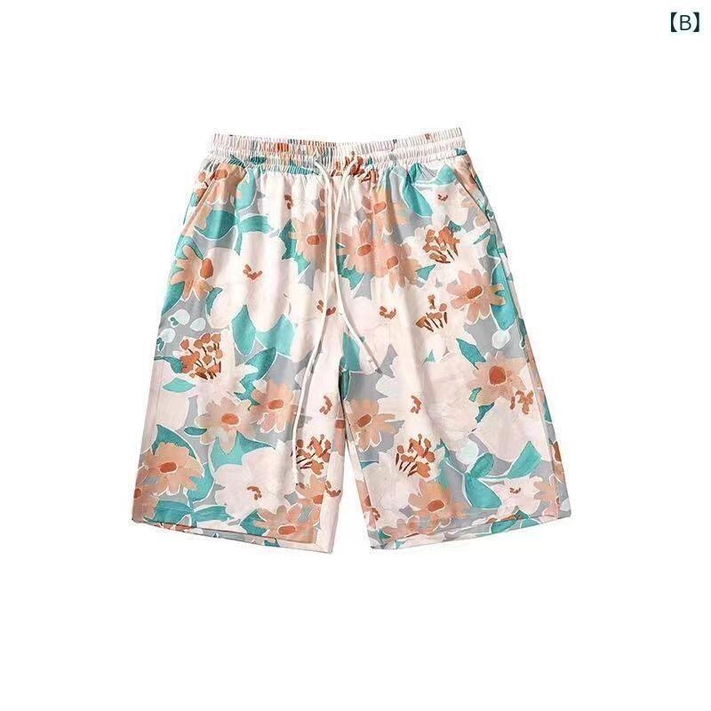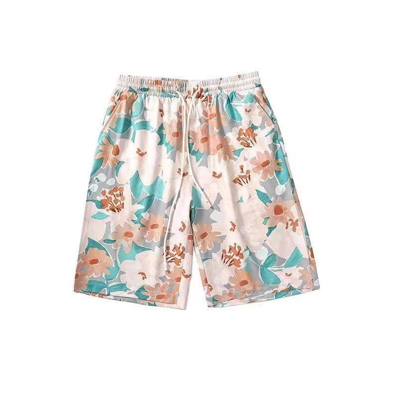 ビーチパンツ メンズ アメリカンスタイル 薄手 速乾 水陸両用 スイムショーツ ハーフパンツ ゆったり ストレート 海 プール リゾート 花柄 夏 軽量 伸縮性 ポリエステル