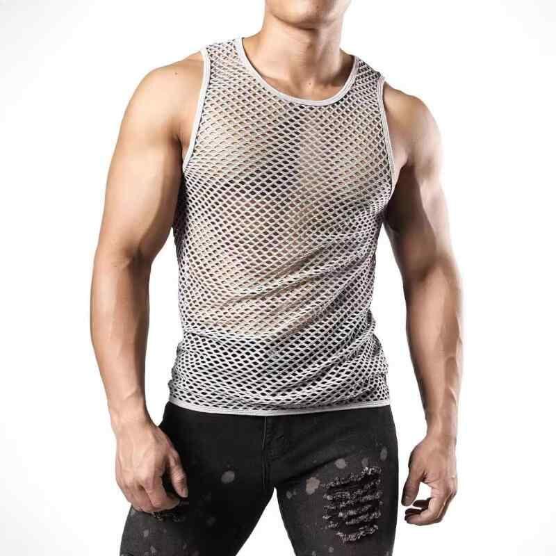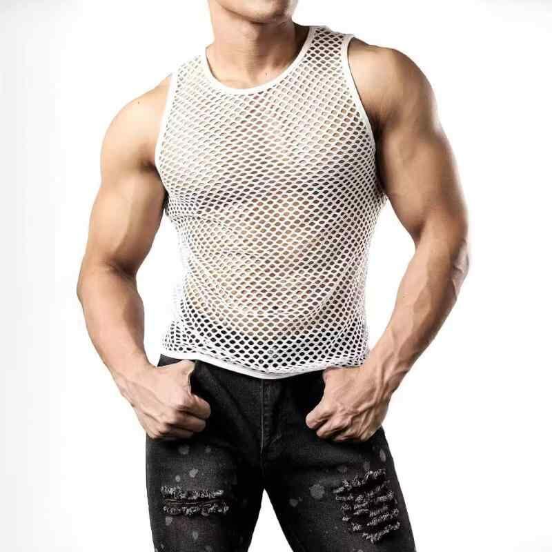 タンクトップ メンズ 透かし編み フィッシュネット クルーネック 丸首 ゆったり ルーズフィット 大きいサイズ ビッグシルエット 薄手 通気性抜群 麻混紡 リネンブレンド カジュアル 普段使い ストリートファッション シワになりにくい ラウンドヘム 無地