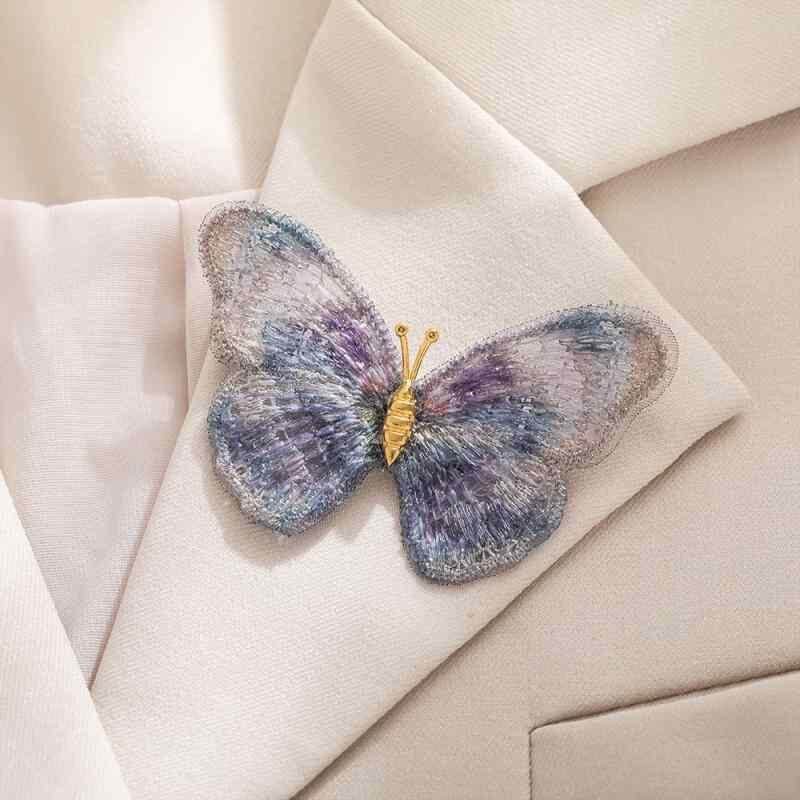胸針 レディース ブローチ 軽量 レトロ 刺繡 蝶 合金製 高級感 個性的 ドリーミーカラー エレガント 上品 インスタ映え ファッションアクセサリー