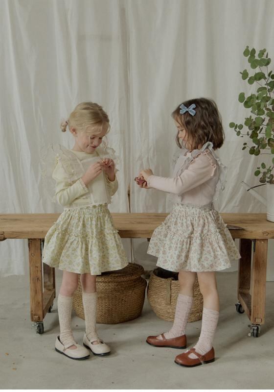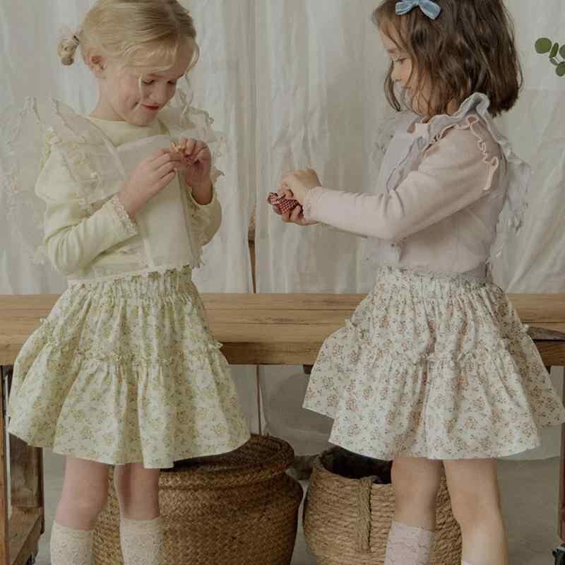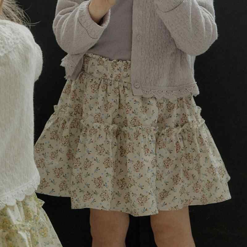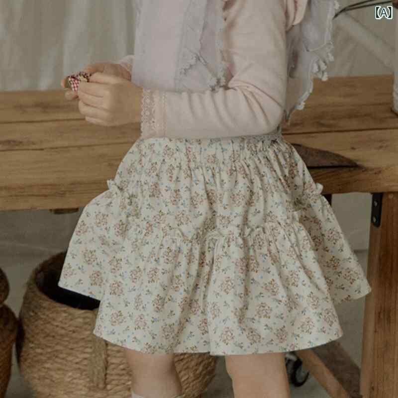 スカート 女の子 キッズ 韓国風 綿100% コットン 小花柄 フラワー フレアスカート 膝丈 ナチュラルテイスト ガーリー 普段着 お出かけ カジュアルスタイル 柔らかい 肌触り 快適