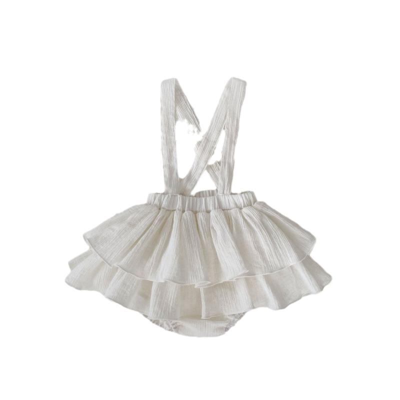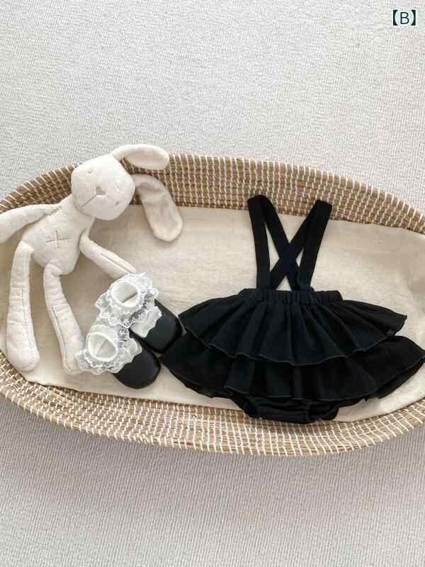 ロンパース 女の子 ベビー キッズ 韓国風 無地 プリンセス フリル ティアード サスペンダー サロペット オーバーオール ブルマスカート 綿 コットン おでかけ着 普段使い 万能 白 黒