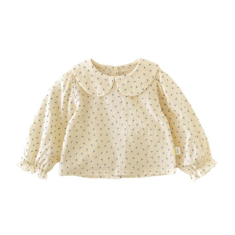 シャツ 女の子 ベビー 丸襟 フリル襟 小花柄 長袖 綿 コットン カントリー風 ナチュラルテイスト ブラウス 柔らかい 肌触り ソフト