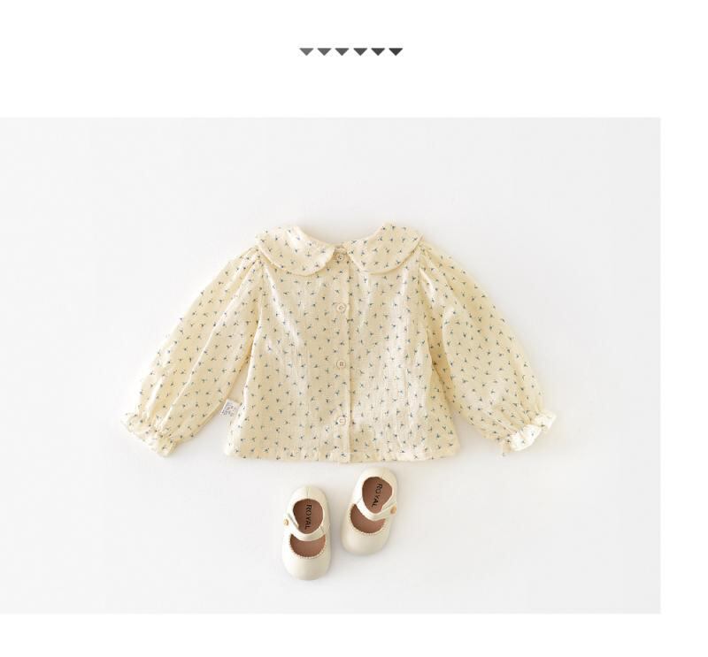 ・カテゴリ: キッズブラウス・対象: 女の子・対象年齢: 1〜3歳・スタイル: 韓流・テイスト: 田園風・主な素材: 綿98%・生地加工: 柔らか仕上げ・襟型: 襟付き・袖丈: 長袖・柄: 花柄・カラー: ベージュ花柄・サイズ展開: 73cm、80cm、90cm、100cm