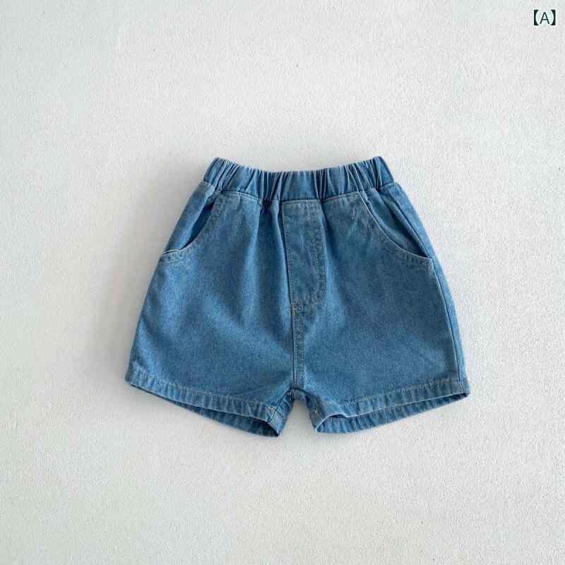 パンツ キッズ ベビー 子供 男の子 女の子 男女兼用 デニム ショートパンツ 短パン ハーフパンツ 綿 コットン 無地 韓国風 トレンド おしゃれ ポケット付き UVカット ミドルウエスト ゴムウエスト カジュアル 普段使い