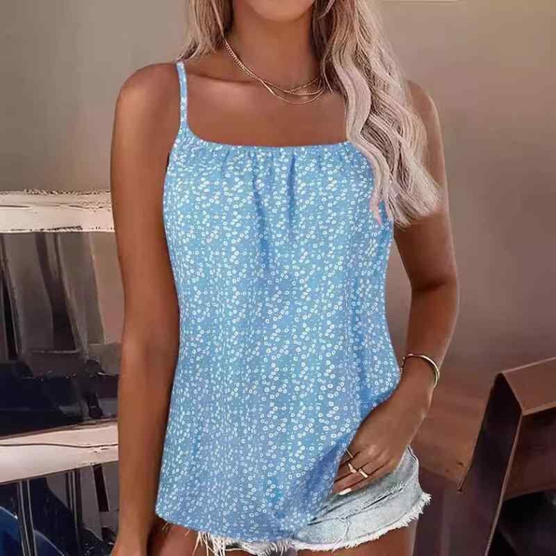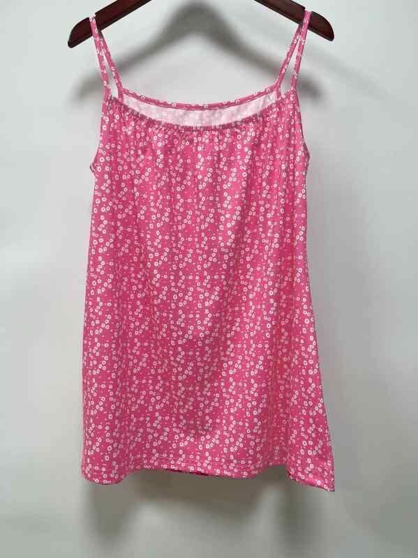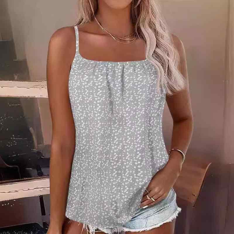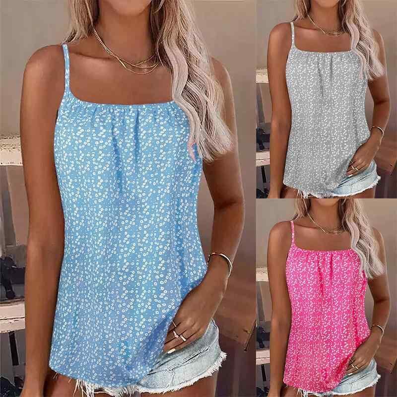 キャミソール レディース 小花柄 ウォッシュ加工 カジュアル 日韓カジュアル ポリエステル 快適 ストレッチ プルオーバー トップス 涼しい 普段使い ピンク ブルー グレー