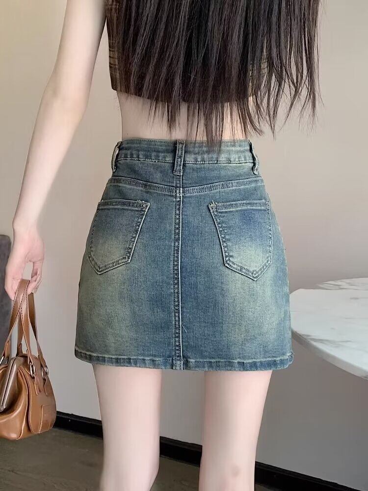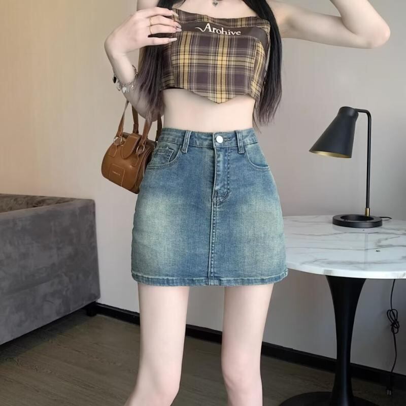 デニムスカート レディース ミニ丈 ショート丈 Aライン ハイウエスト 細見え スタイルアップ 透け防止 インナーパンツ付き 大きいサイズ ゆったり 小柄 低身長向け 夏 サマー 甘辛ミックス ギャル カジュアル ブルー デニム生地 ストレッチ