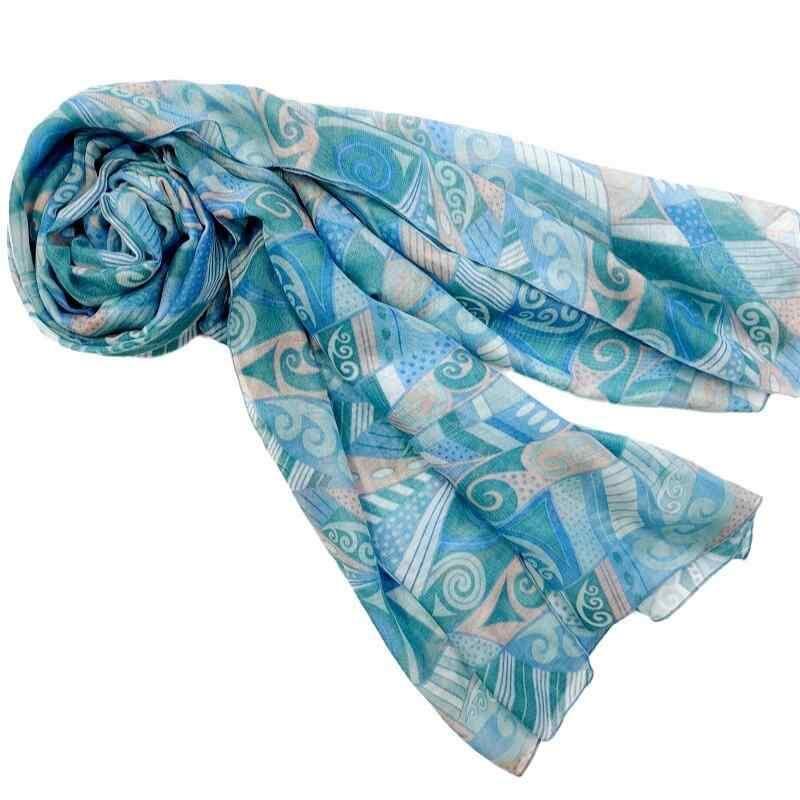 ストール レディース ポリエステル 薄手 花柄 パッチワーク プリント 大判 ショール 保温 日よけ 紫外線対策 冷房対策 カジュアル シンプル 万能 ファッション小物 オールシーズン スカイブルー