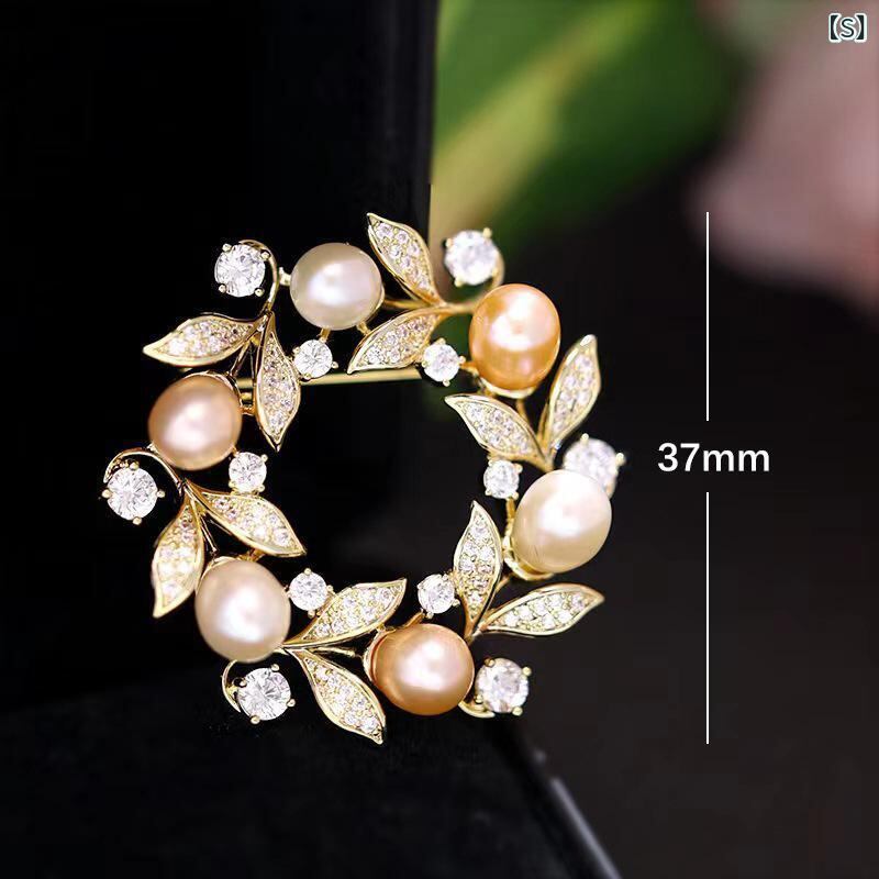 ブローチ レディース パール 真珠 花火モチーフ ラインストーン 合金製 ゴールドカラー 上品 高級感 エレガント スーツ ジャケット コート アウター 装飾品