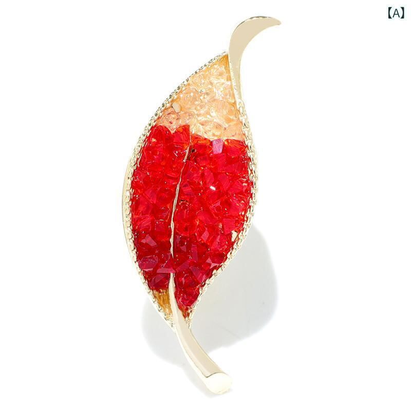 ・素材: 亜鉛合金 ・対象: レディース ・モチーフ: 葉 ・加工: 電気めっき ・カラー展開: レッド、グリーン ・用途: 装飾 ・スタイル: フレッシュ&スイート ・カテゴリ: ブローチ