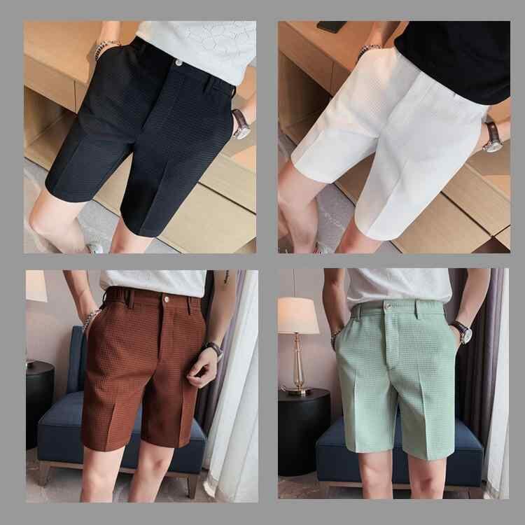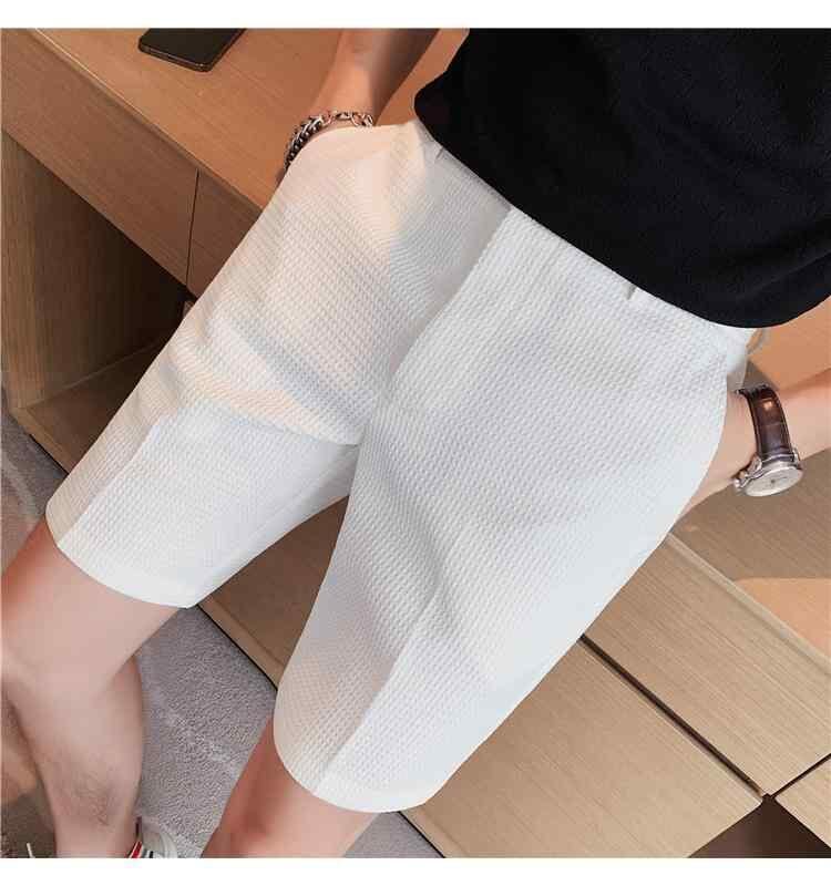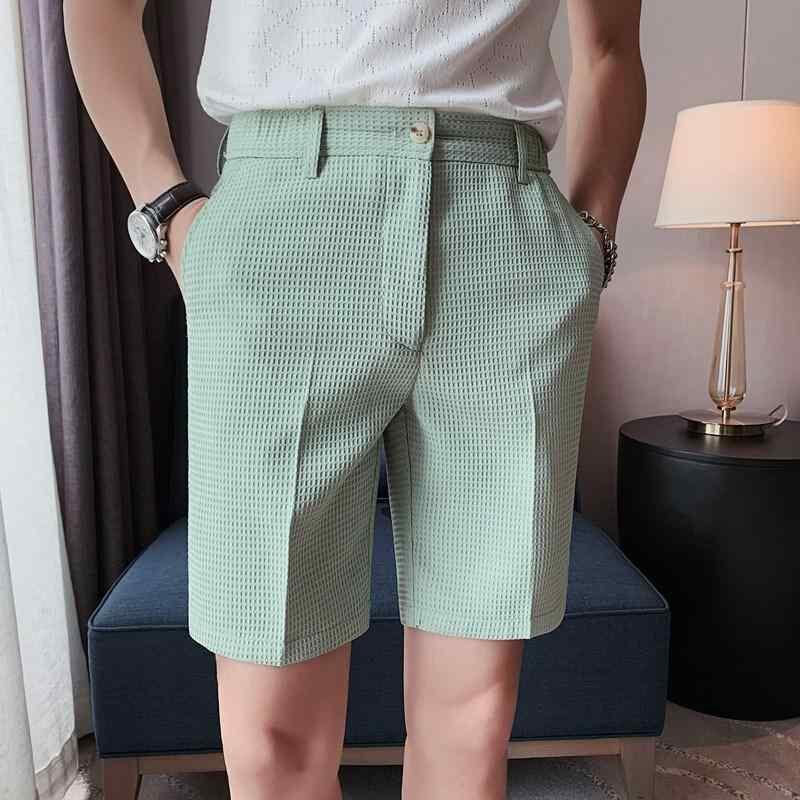 ハーフパンツ メンズ ワッフル生地 ポリエステル素材 五分丈 薄手 ストレートシルエット 微ストレッチ カジュアル スラックス 無地 きれいめカジュアル