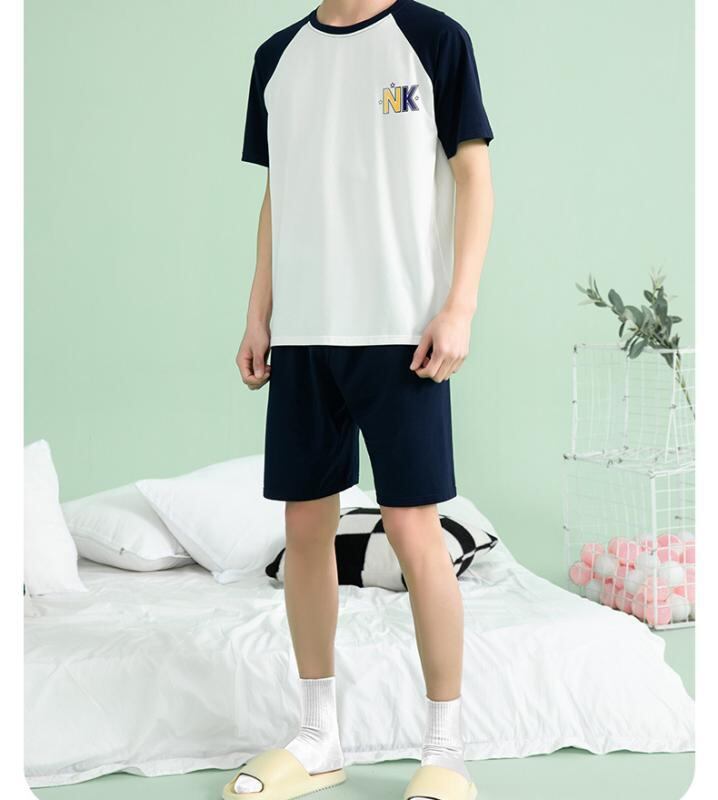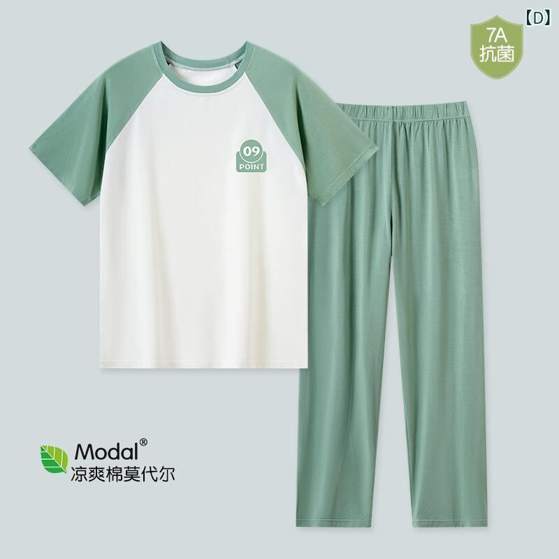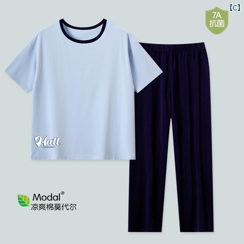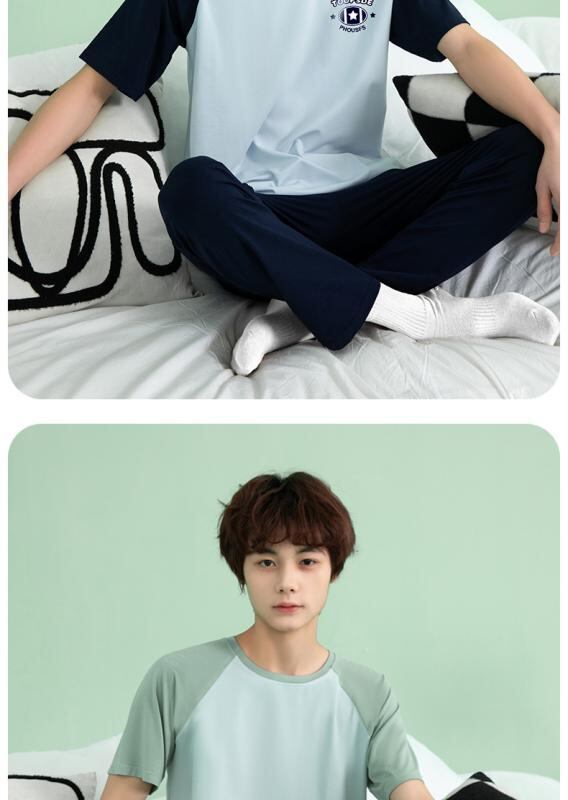 ルームウェア メンズ 夏用 薄手 半袖 九分丈 ロングパンツ 綿モダール 上下セット 丸首 通気性 抗菌 涼しい 快適 リラックス ワンマイルウェア 部屋着 ティーンズ シンプル カジュアル
