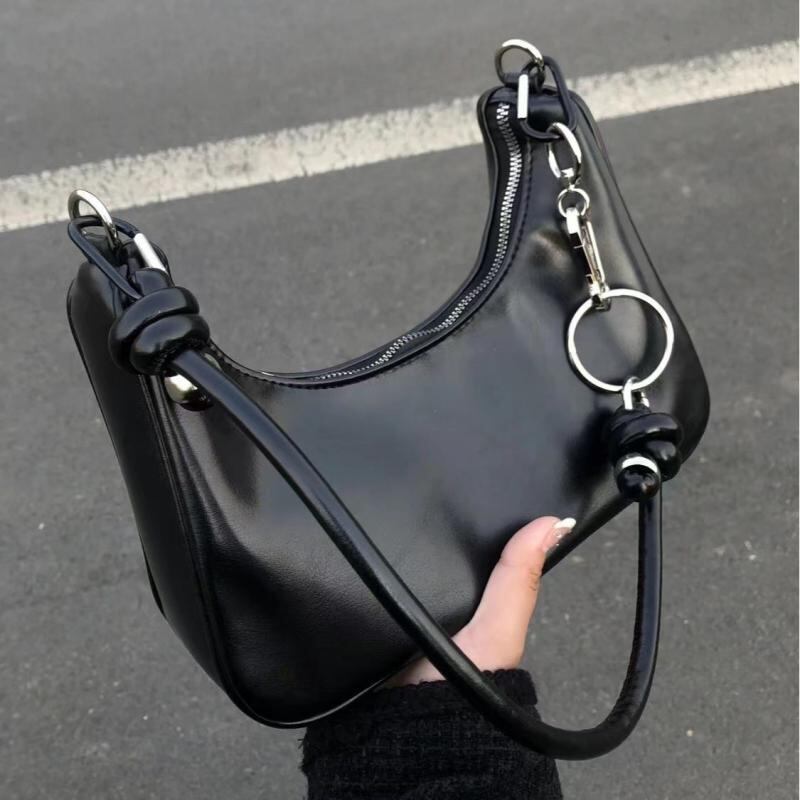 バッグ レディース 通勤用 カジュアル デイリー 肩掛け ワンショルダー ファスナー開閉 餃子型フォルム PUレザー ハンドバッグ 高級感 スマートフォン収納 ソフト素材 ブラック