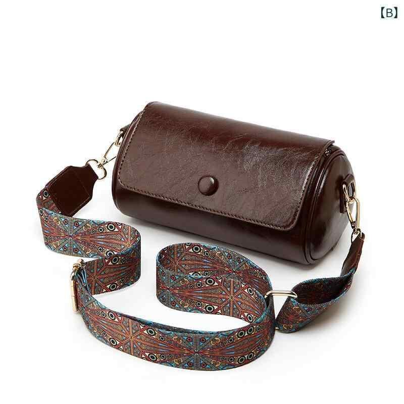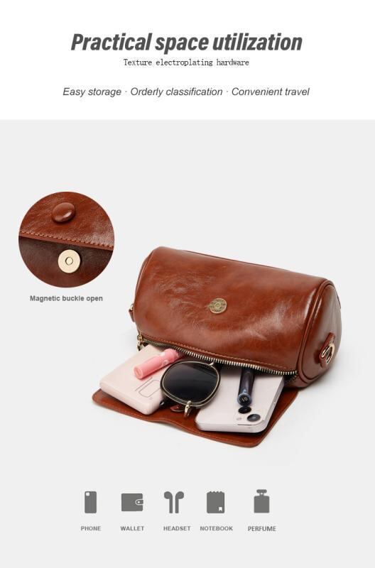 ショルダーバッグ レディース レトロ ミニバッグ 個性的 円筒形 ドラムバッグ 斜めがけ 肩掛け PUレザー 柔らかい 幅広ストラップ 携帯ポケット付き 普段使い デイリーユース オールシーズン対応