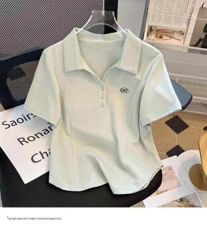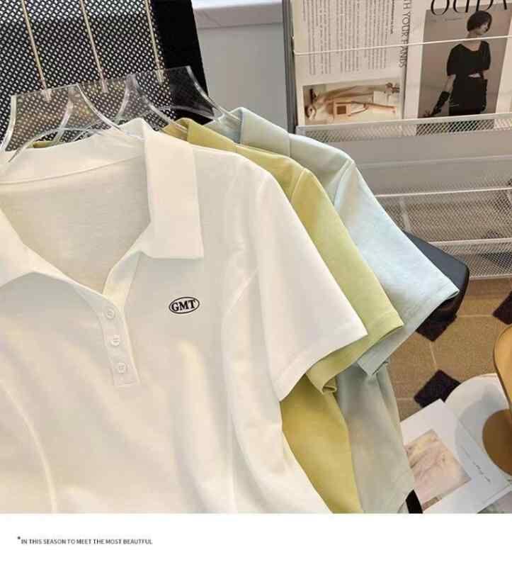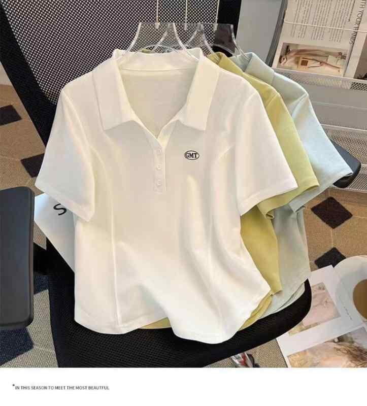 Tシャツ レディース アシンメトリー ヘムライン 半袖 ゆったり オーバーサイズ ポロ襟 ポリエステル素材 刺繍 ロゴ プルオーバー ホワイト イエロー グリーン カジュアル スタイル