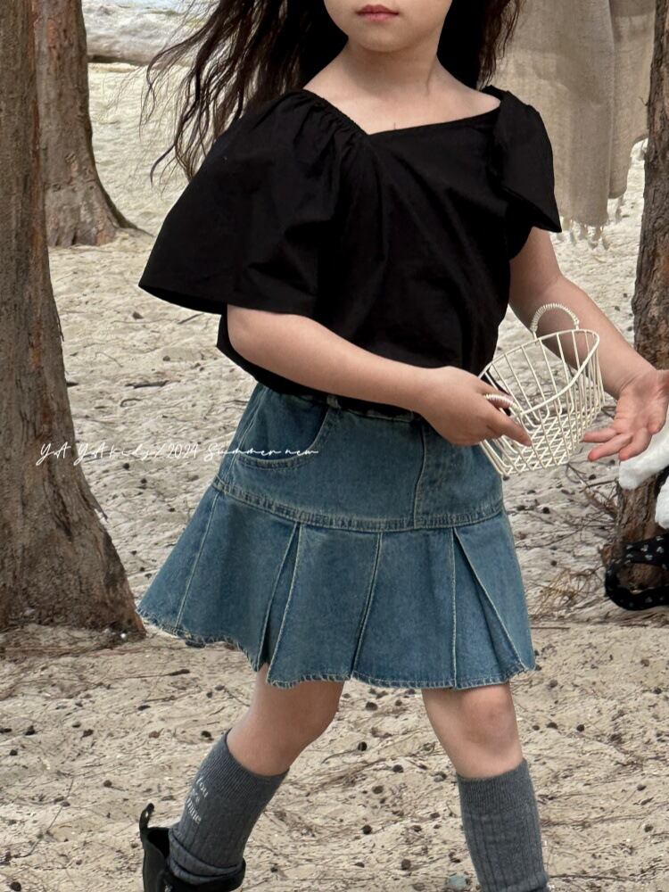 デニムスカート キッズ ガールズ プリーツ ミニ丈 スカッツ インナーパンツ付き 綿素材 コットン カジュアル おしゃれ かわいい 韓国風 上品 普段使い 通学 ボトムス